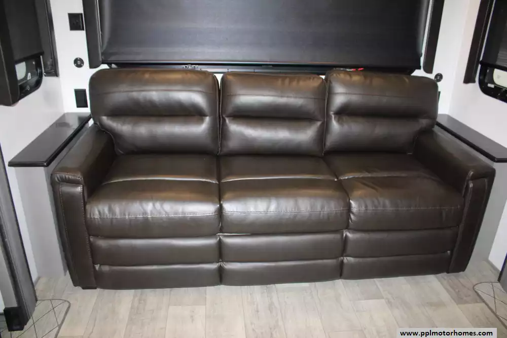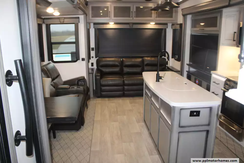 The 2022 Keystone Montana 3121RL is a 35-foot fifth-wheel designed for comfort and extended travel, offering a rear-living floor plan with a fully equipped kitchen, private front bedroom, and roomy living area. It features three slideouts for generous interior space, sleeps up to four, and includes a king-size bed (plus a convertible hide-a-bed sofa) for overnight guests. The kitchen comes with a full-size, 18-cubic-foot RV gas/electric refrigerator, three-burner cooktop, solid-surface counters, and a central island, ideal for cooking and meal prep while on the road. On the comfort side, it has 30,000 BTU air conditioning, a 35,000 BTU furnace, and generous fresh (66 gal), grey (88 gal) and black (49 gal) water capacities; a power theater seating, 50" LED HDTV and fireplace round out the living room amenities. The 3121RL balances manageable towing with robust build features like insulated underbelly, fiberglass sidewalls, and plenty of storage. This model features two solar panels, dual power awnings, JBL audio, rear camera prep, Winegard Air 360-plus (wifi prep may require subscription), and the seller upgraded the bedroom TV to a smart TV. Let the memories begin!