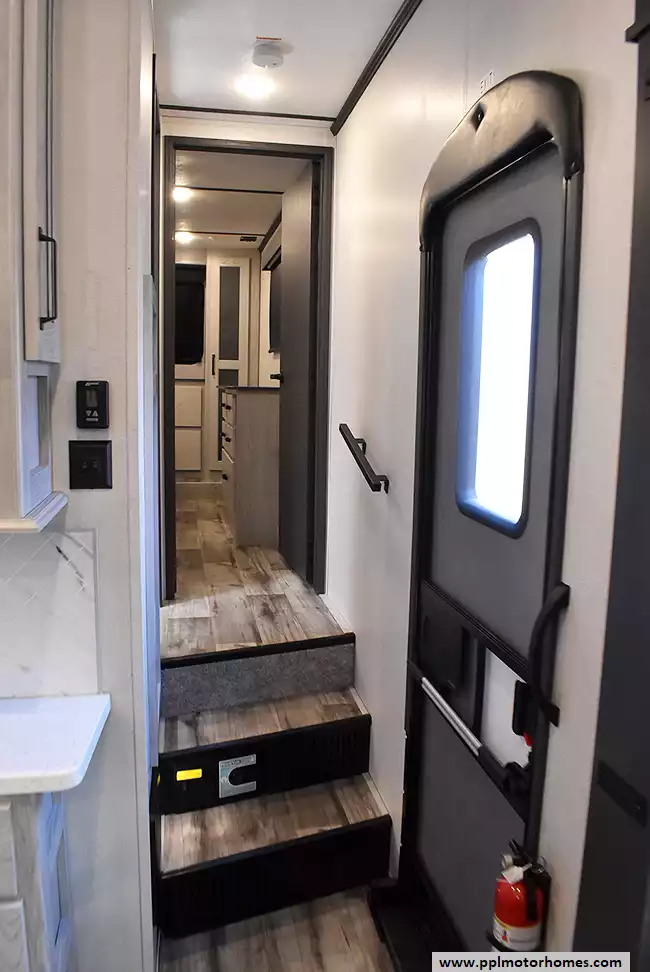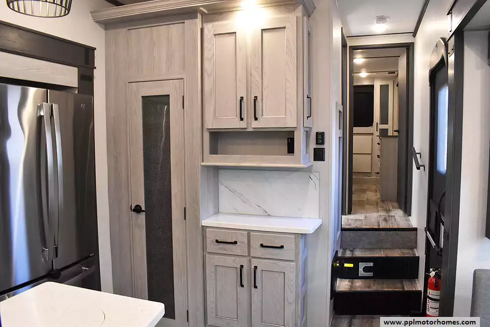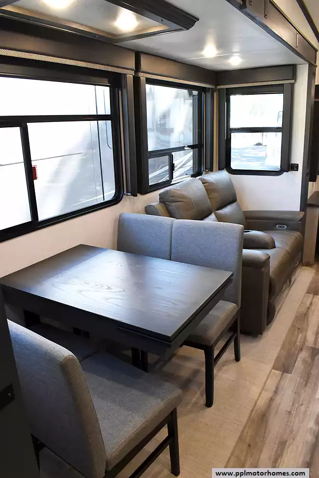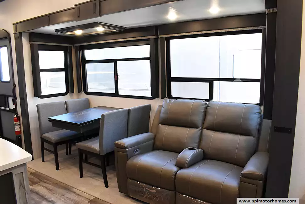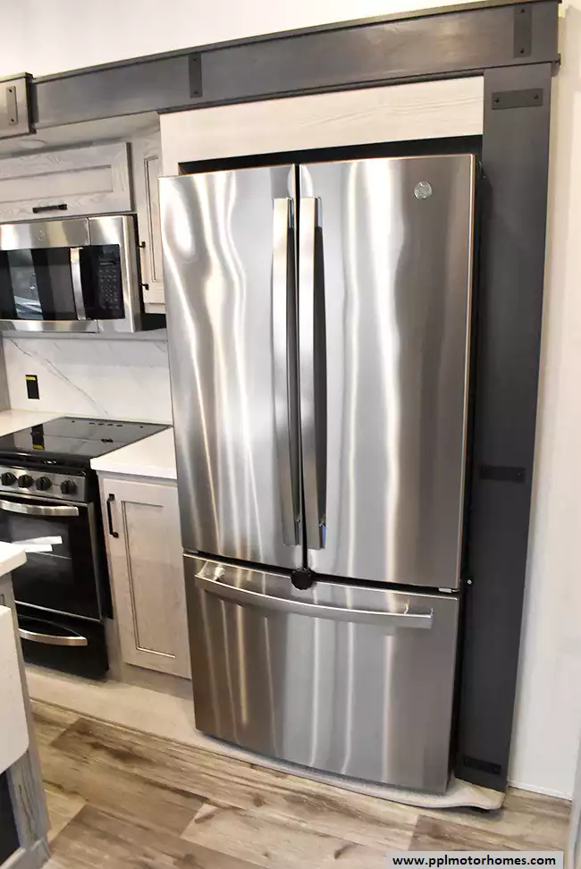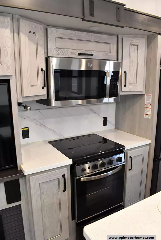This 2022 Montana High Country 295RL has an Electric Landing Gear, 3 Slide-outs, 2 Ducted Air Conditioners, Residential Ge Refrigerator, Automatic Main Awning And Window Awning, Solar Panel, Heated Tanks, Satellite Receiver, Outside Speakers, TV, Outside Shower, Fireplace, Central Vacuum, Microwave, 3 Burner Range, Oven