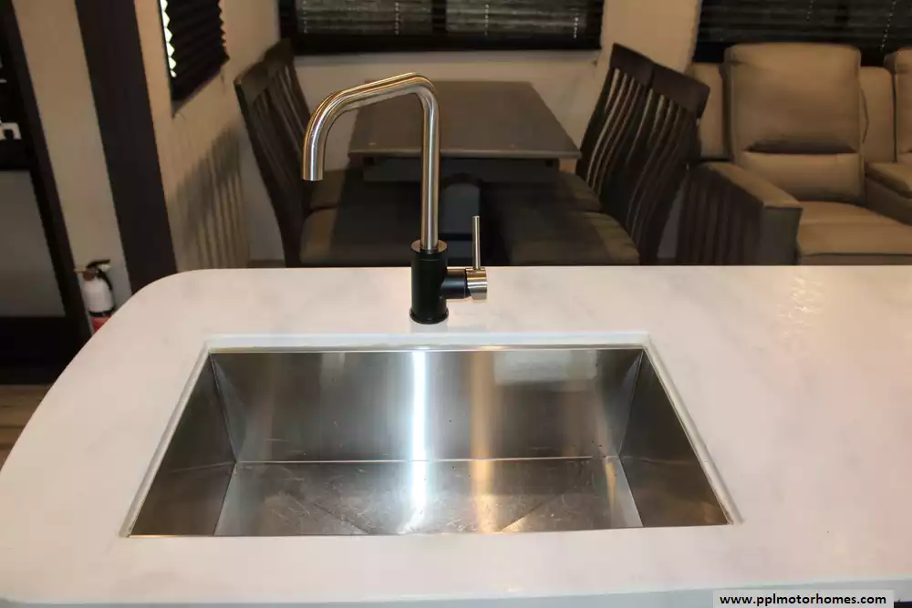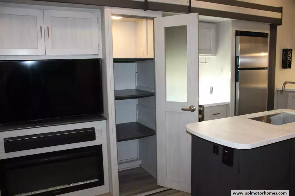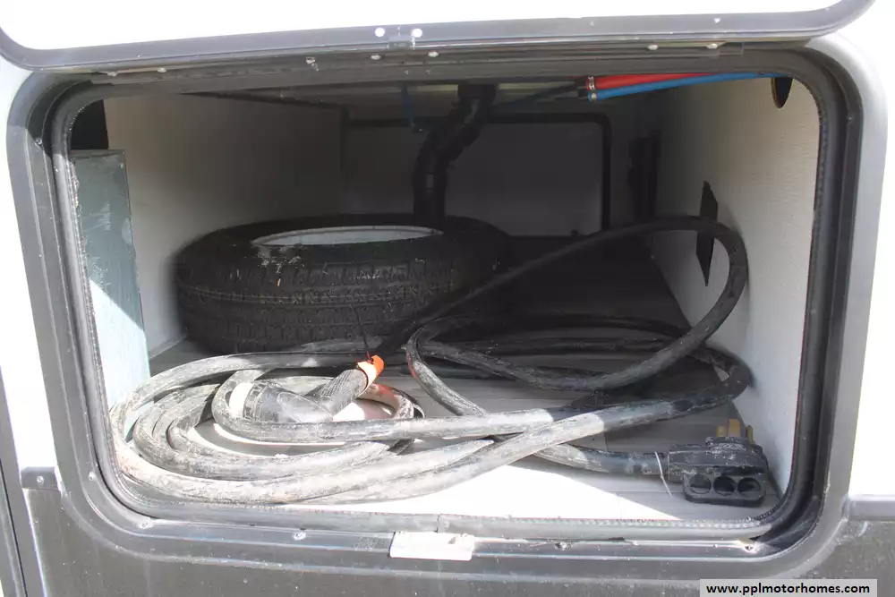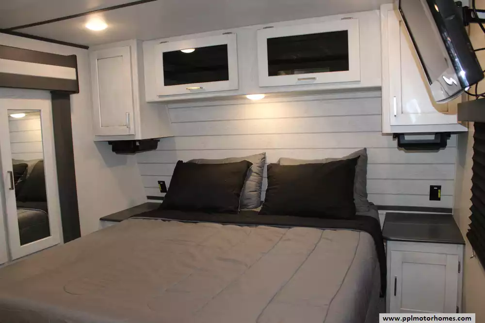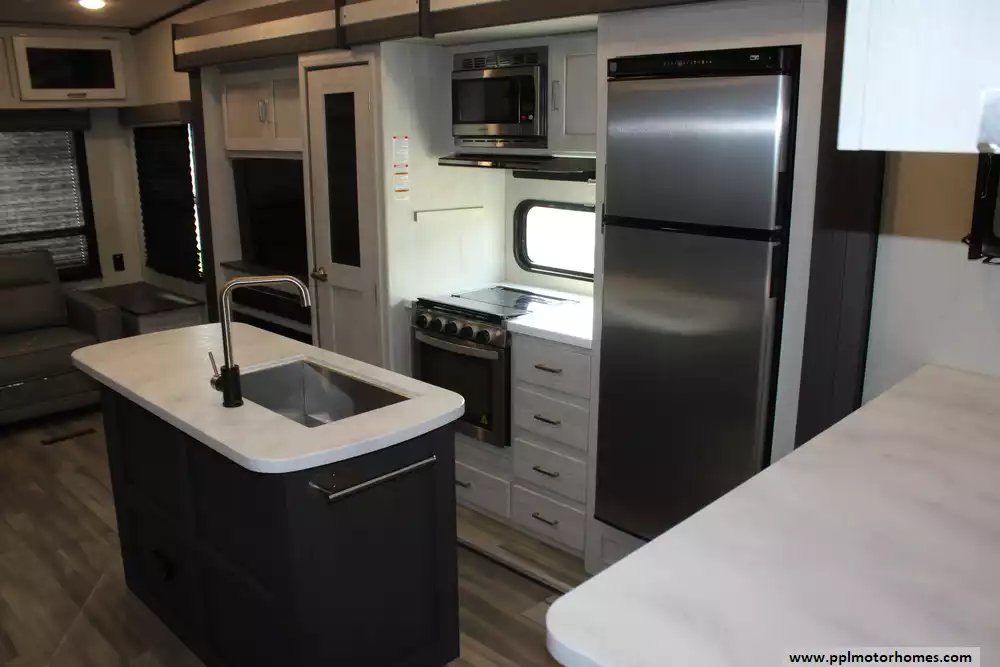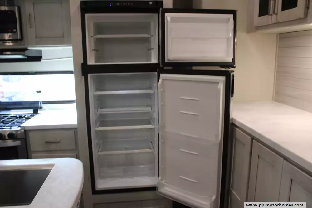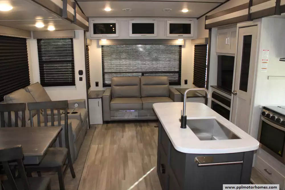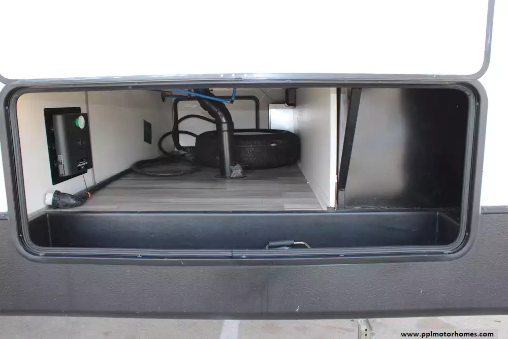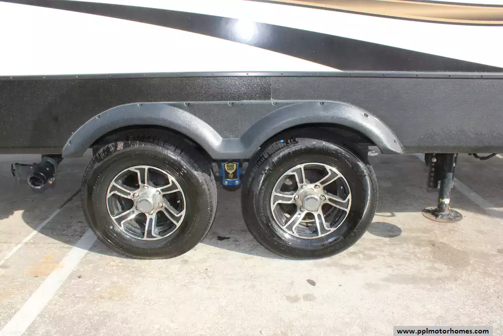 Specs: Length: 33.8 ft., Width: 8.4 ft., Height: 13 ft., Payload Capacity: 2,761 lbs., Total Fresh Water Tank Capacity: 81 gal., Total Gray Water Tank Capacity: 78 gal., Total Black Water Tank Capacity: 44 gal., Total Propane Tank Capacity: 60 lbs.