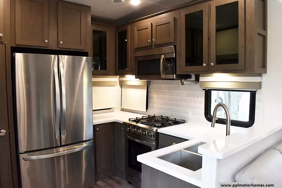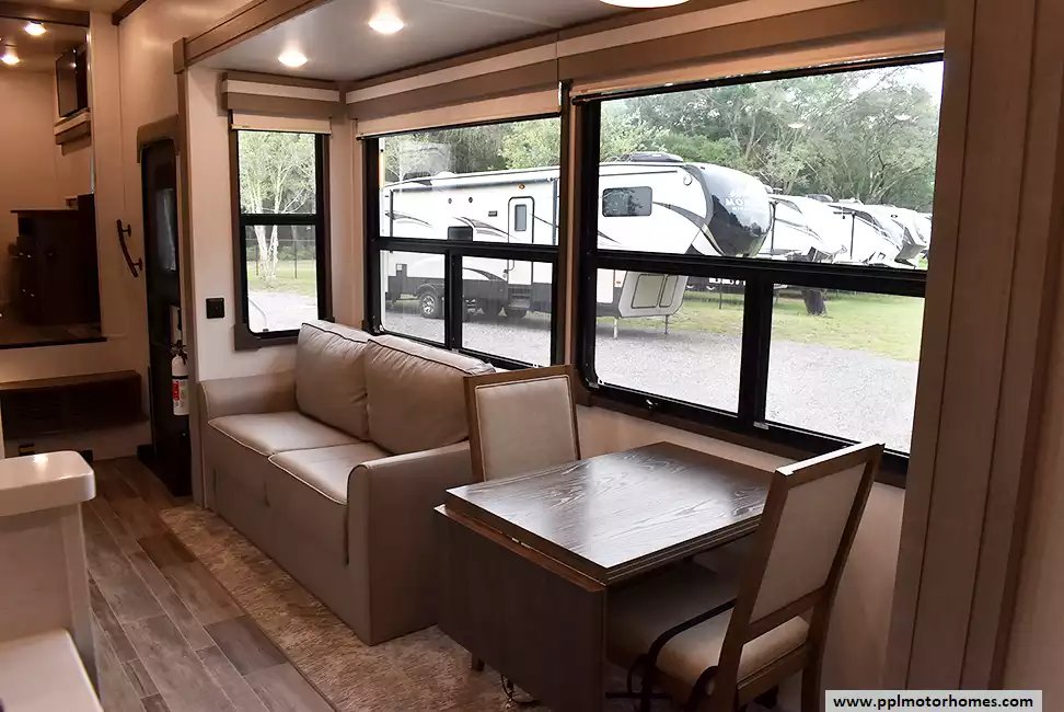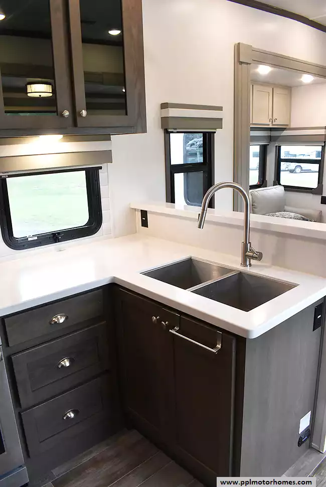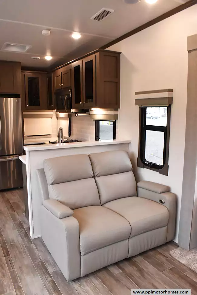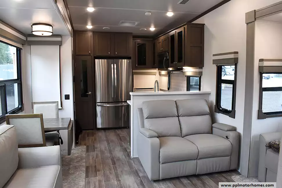 Upscale finishes inside and generous exterior storage make this fifth wheel perfect for extended trips or full-time living. A true blend of comfort, style, and functionality