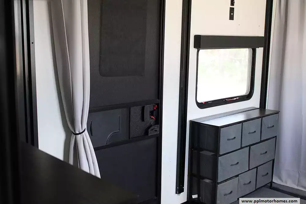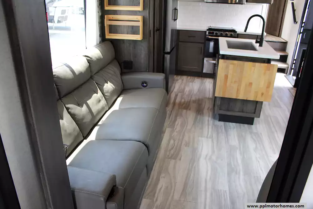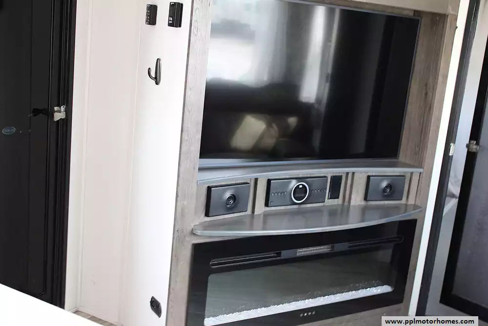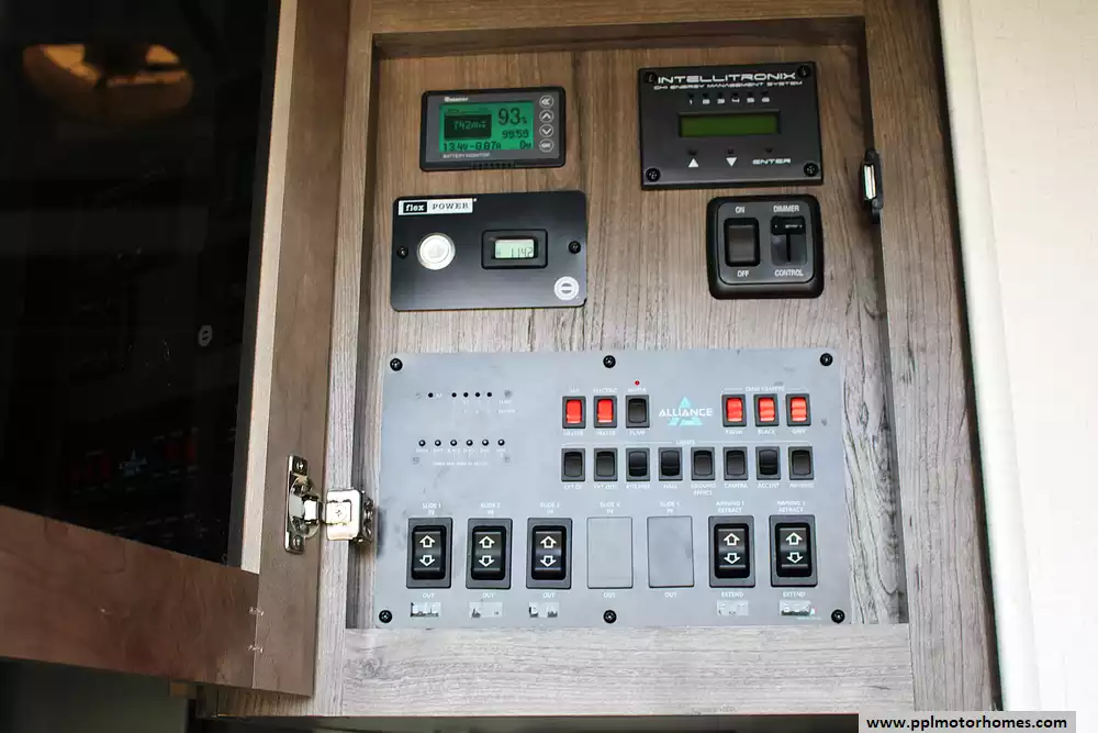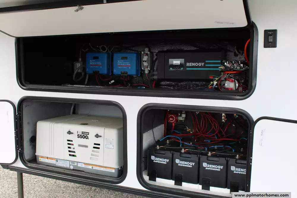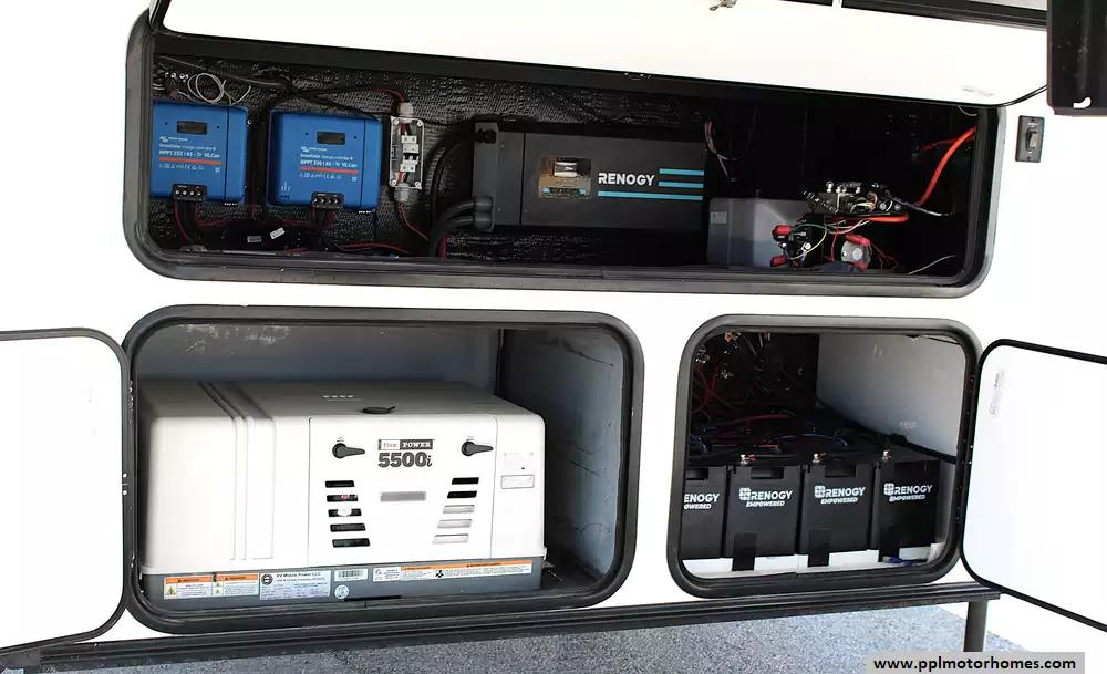 This Valor is fully upgraded and boondock-ready with a top-of-the-line RVMP 5500 Fuel/LP Flex Generator--quieter and more efficient than an Onan--and packed with 1,600 watts of solar, a 3,000-watt inverter, and a huge 800 amp-hour Bluetooth lithium battery bank allowing for complete off-grid. Control and monitor your system with ease using Bluetooth-connected batteries. You also get 4 total TVs, including three 12V models and a stunning Samsung main TV, so everyone has a spot to unwind in style.