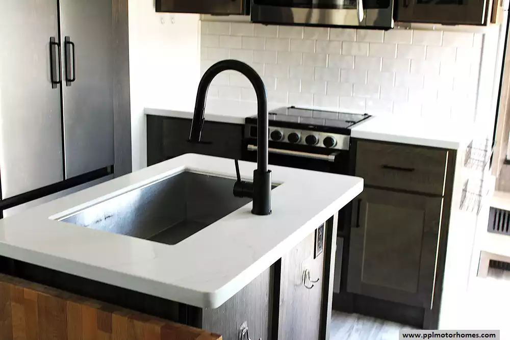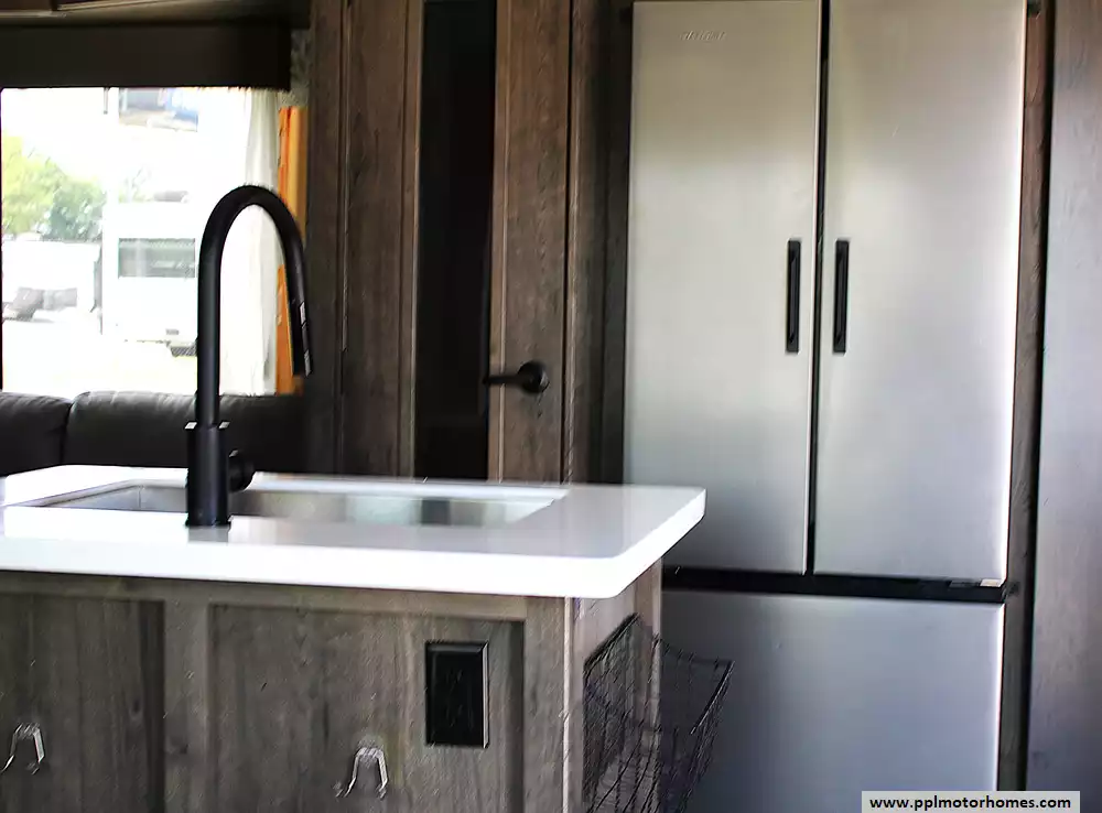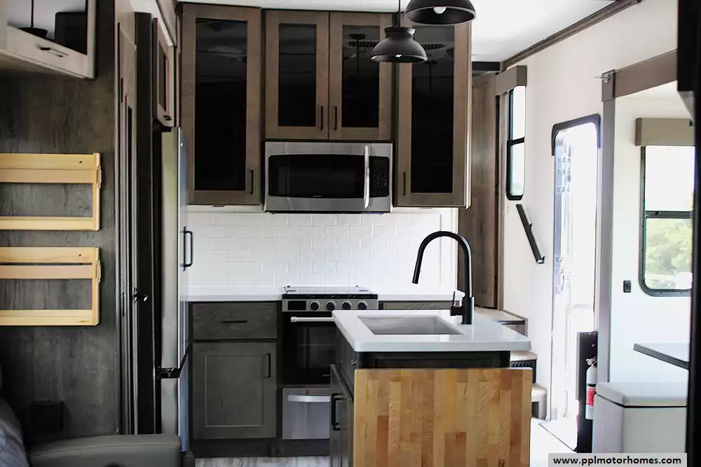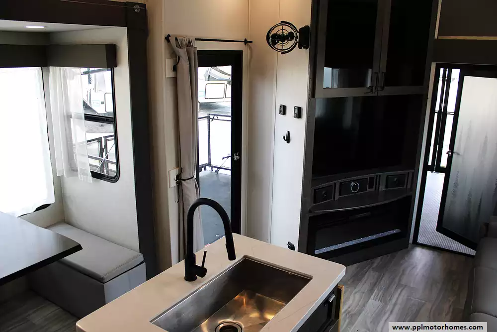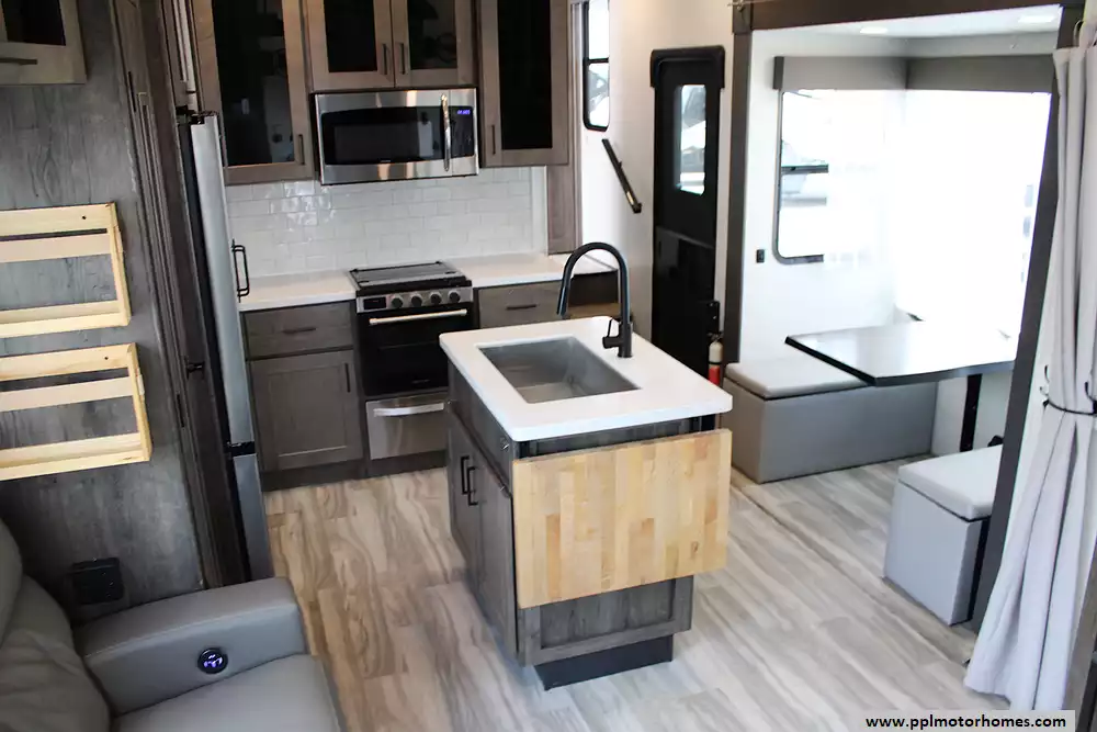 This Valor is fully upgraded and boondock-ready with a top-of-the-line RVMP 5500 Fuel/LP Flex Generator--quieter and more efficient than an Onan--and packed with 1,600 watts of solar, a 3,000-watt inverter, and a huge 800 amp-hour Bluetooth lithium battery bank allowing for complete off-grid. Control and monitor your system with ease using Bluetooth-connected batteries. You also get 4 total TVs, including three 12V models and a stunning Samsung main TV, so everyone has a spot to unwind in style.