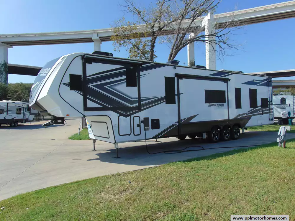 This 2023 Momentum 395MS is a luxury toy hauler fifth wheel that offers a perfect blend of comfort,spaciousness,and rugged functionality.Built for adventure enthusiasts who want to bring their toys along, this model features a versatile layout and premium amenities,making it ideal for both extended trips and off-grid exploration.Amenities Include...3 Slide-outs, Onan Gas Generator, Gas/110v Norcold Refrigerator, In-Fridge Ice Maker, Automatic Main Awning And Slide Awning, Washer/Dryer, Solar Panel, Heated Tanks, Outside Entertainment System,4 TVs,Outside Shower, Fireplace, Convection Microwave,and 4 Burner Range.It offers a high-end, adventure-ready fifth wheel experience, with a spacious garage,luxury interior,and robust amenities,making it perfect for thrill-seekers who want to travel without sacrificing comfort.