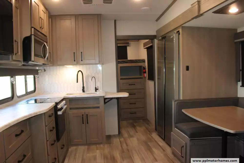 Inside, you will find a thoughtfully designed living space featuring a deep slide-out that significantly expands the floor room for an open, airy feel. The well-appointed kitchen includes a high-capacity refrigerator to handle all your meal prep needs for extended trips, while the premium finishes throughout reflect the sophisticated craftsmanship the Reflection series is famous for. Whether you are heading to the mountains or the coast, this 2023 Reflection 150 offers the perfect blend of durability, style, and modern convenience for your next outdoor adventure.