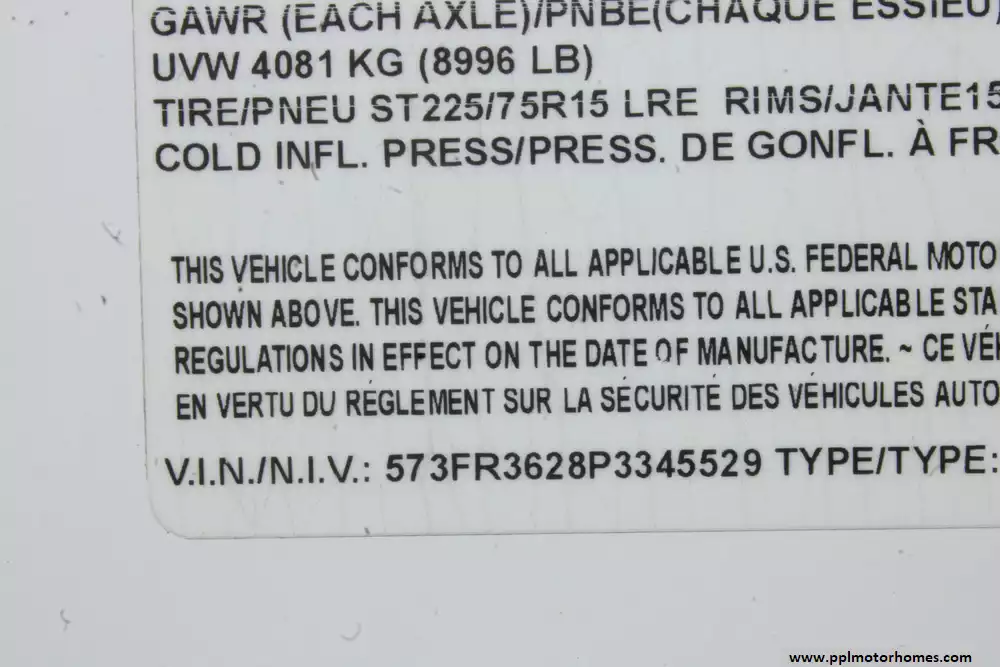 Specs: Length: 35.9 ft., Height: 12.3 ft., Total Fresh Water Tank Capacity: 54 gal., Total Gray Water Tank Capacity: 78 gal., Total Black Water Tank Capacity: 39 gal.