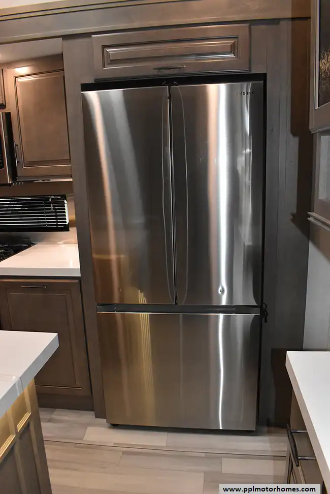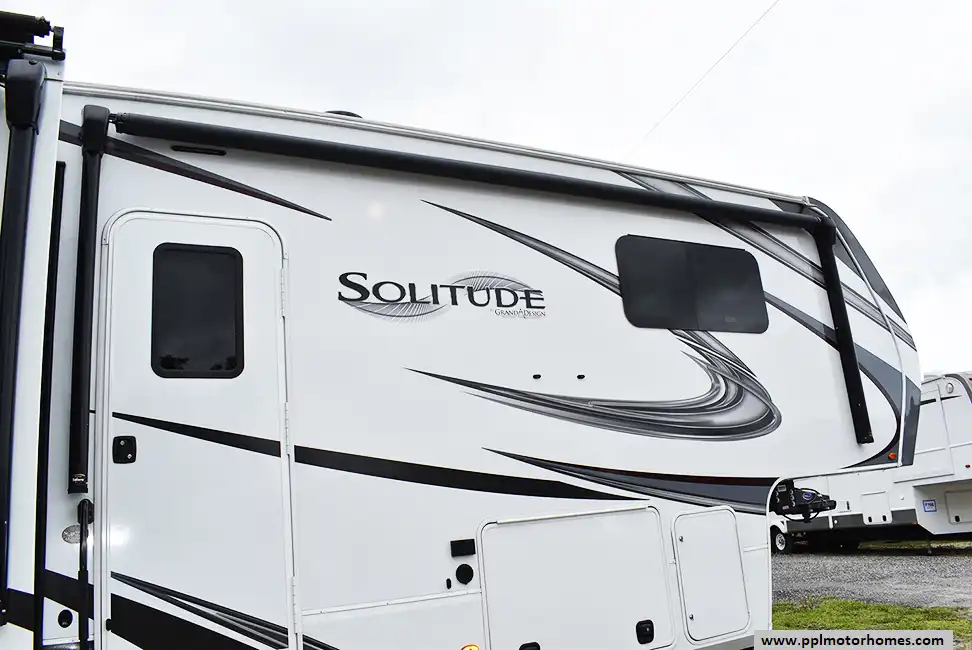 This 2023 Solitude 310 GK-R has Hydraulic Landing Gear, 3 Slide-outs, 3 Ducted Air Conditioners, Residential Samsung Refrigerator, In-Fridge Ice Maker, Automatic Main Awning And Slide Awning, Washer/Dryer Connections, Satellite Receiver, Outside Speakers, 2 TVs, Outside Shower, Central Vacuum, Microwave, 4 Burner Range, Oven