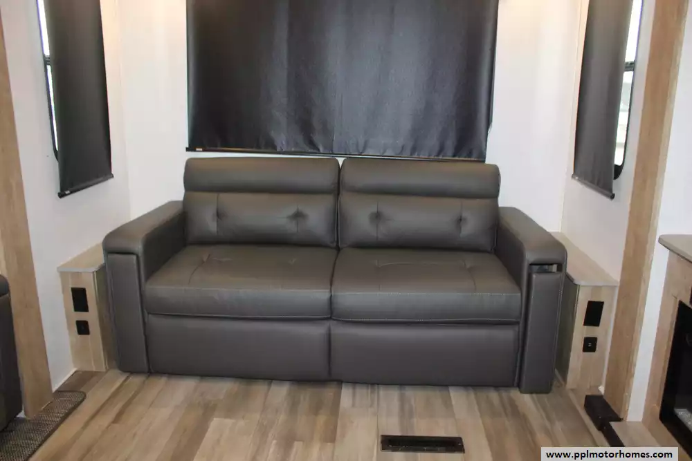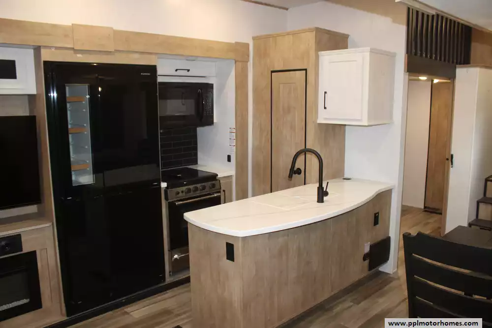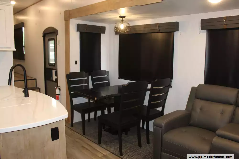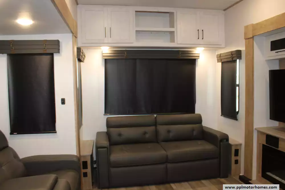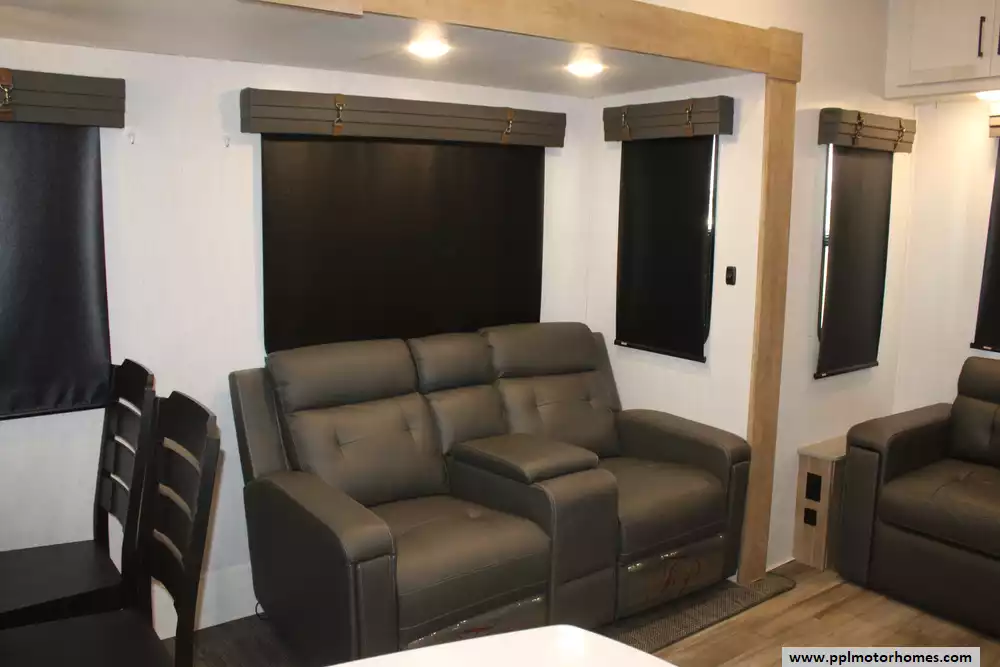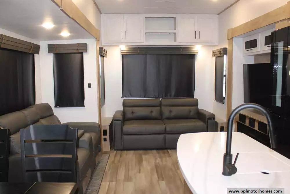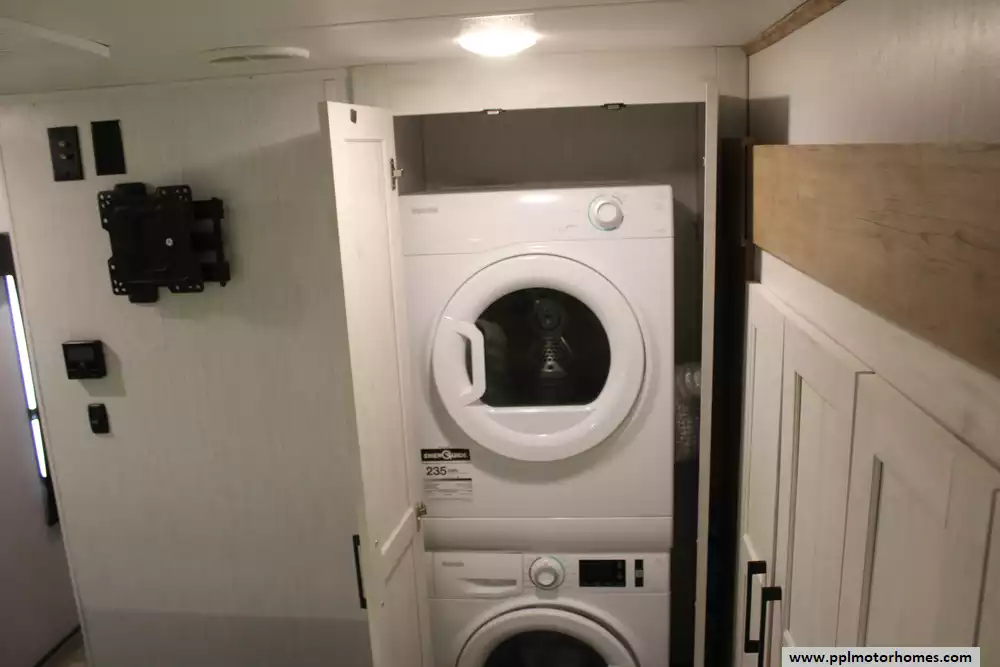 Experience a new level of versatile luxury with this 2023 Milestone 377MB. Renowned for its innovative mid-bunk floor plan, this 43-foot fifth wheel offers the perfect layout for families or professionals needing a dedicated workspace without sacrificing the comfort of a spacious rear living area. The interior is anchored by five massive slide-outs that create an expansive, residential feel, complemented by a cozy fireplace and a full entertainment center with a built-in TV. The gourmet kitchen is ready for any meal with a 12v Furrion refrigerator, a three-burner range, an oven, and a microwave. For added convenience during long-haul trips, this unit comes fully equipped with an onboard washer and dryer and two ducted air conditioners to ensure total climate control in any season.