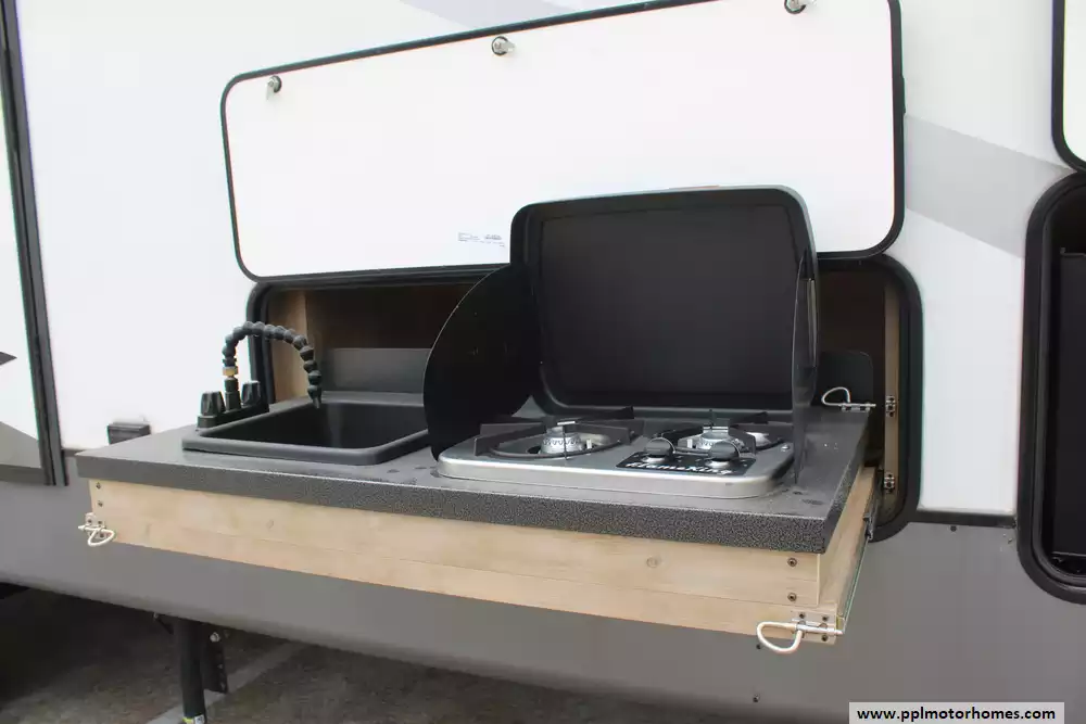 Built with high-quality fiberglass siding and a durable rubber roof, the Milestone 377MB is designed for both performance and longevity. Setting up camp is effortless thanks to the electric landing gear and an automatic main awning that provides instant shade for your outdoor oasis. You will love the exterior amenities, including a dedicated outdoor kitchen and a convenient outside shower for quick clean-ups after a day of adventure. Whether you are hosting a large gathering or enjoying a quiet evening under the stars, this Milestone combines sophisticated modern design with practical, high-end features to provide a truly premium towing experience.