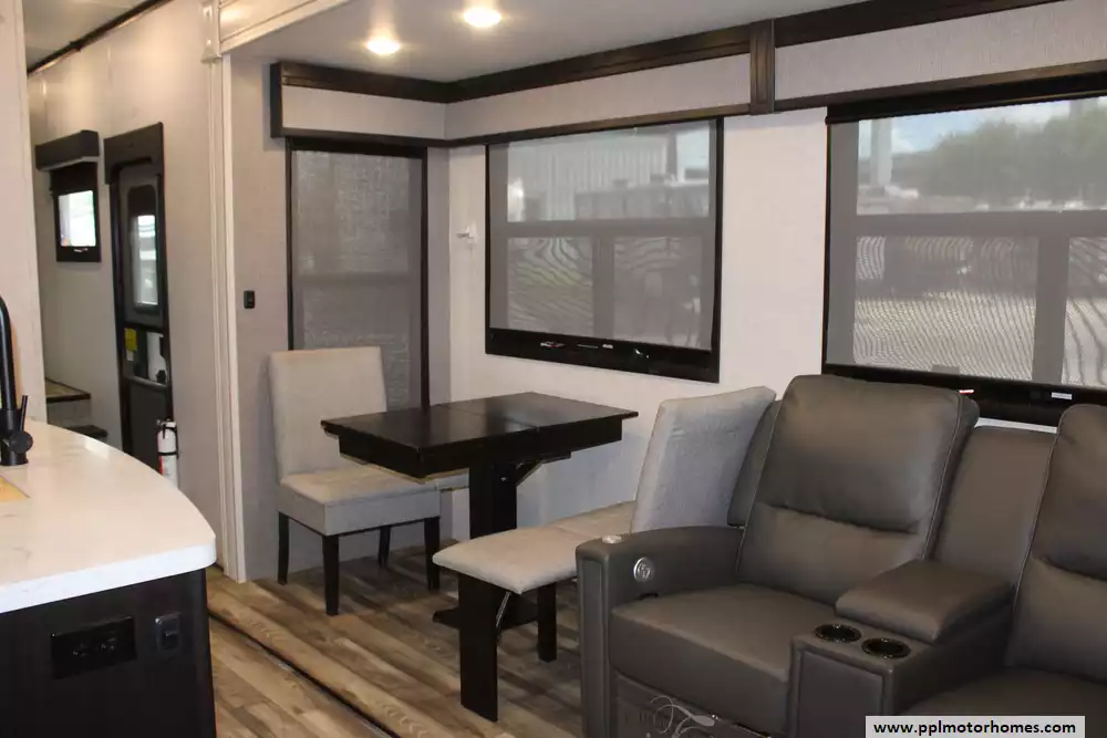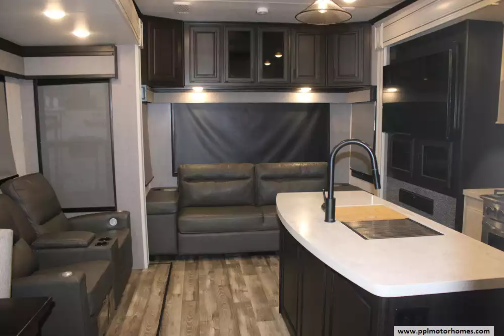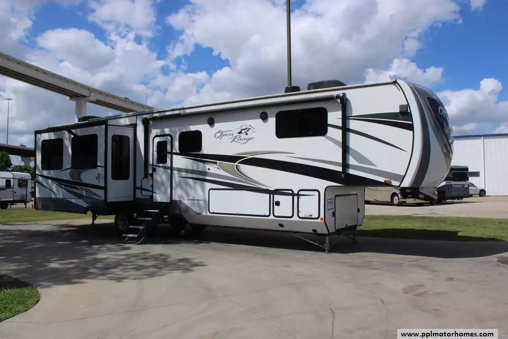 Experience the ultimate in residential-style travel with this 2023 Open Range 371MBH. Renowned for its massive 100-inch wide-body construction and extra-deep slides, this 42-foot fifth wheel offers an expansive interior that sets the standard for comfort and livability. The versatile mid-bunk floorplan is a standout quality of this model, providing a multi-purpose room that functions perfectly as a private home office or an extra guest suite. Built with a durable fiberglass body and a reliable rubber roof, this four-season-ready coach is designed for long-term adventures, featuring four power slide-outs and two ducted air conditioners to ensure total climate control and space.