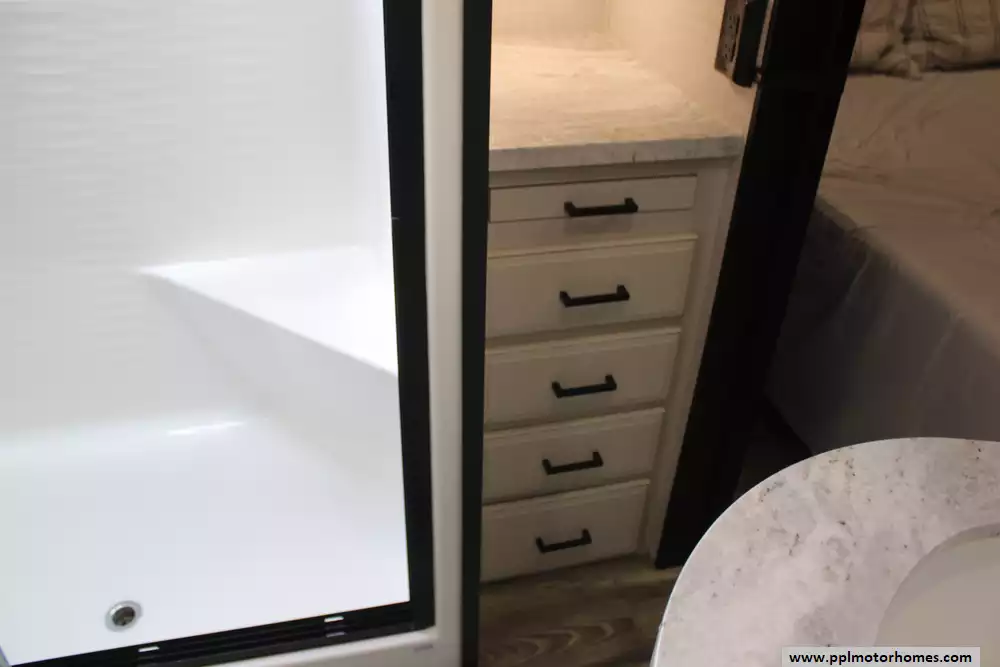 (Floor plan is NOT drawn to scale. Length of vehicle is approximate. Buyer is responsible for verifying actual length. PPL Motor Homes compiled this list of features, specifications, equipment and options as a guide. No representation or warranties, either express or implied, are made as to the accuracy of the information herein. Please verify for yourself all items listed before purchase.)