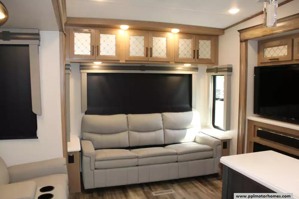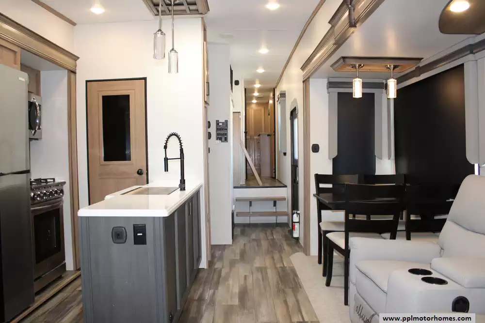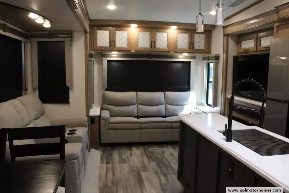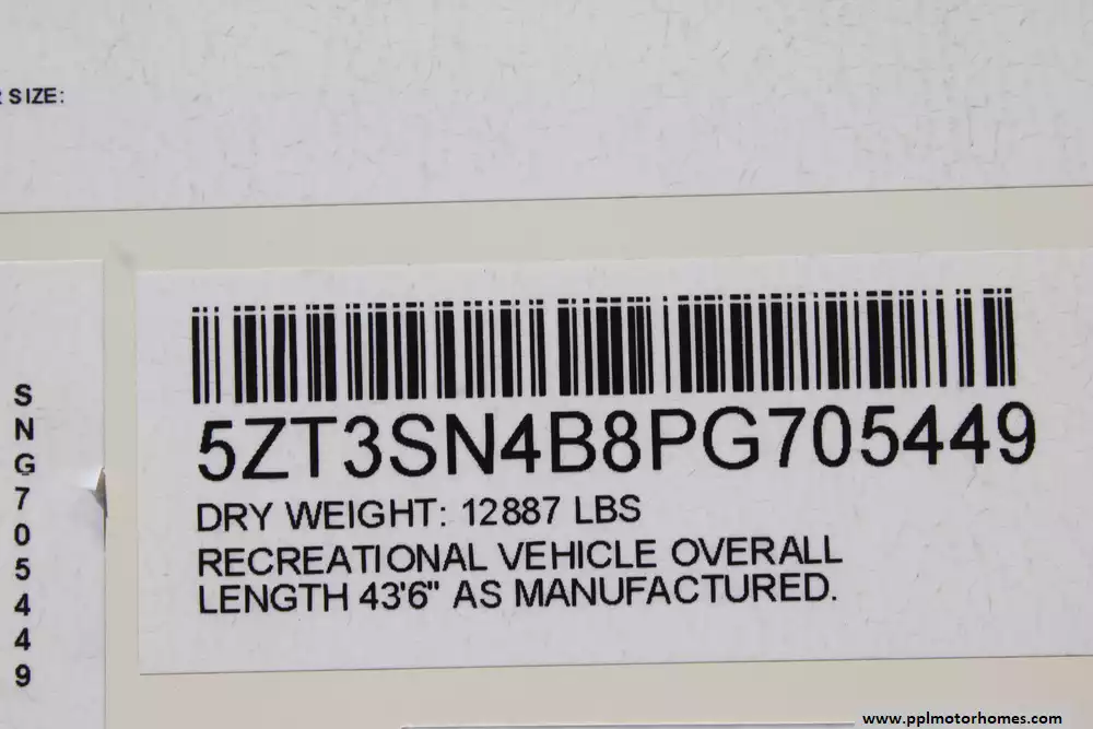 Specs: Length: 43.67 ft., Width: 8.33 ft., Height: 13.08 ft., Payload Capacity: 2,316 lbs., Total Fresh Water Tank Capacity: 54 gal., Total Gray Water Tank Capacity: 73 gal., Total Black Water Tank Capacity: 34 gal., Number of Propane Tanks: 2, Total Propane Tank Capacity: 60 lbs.