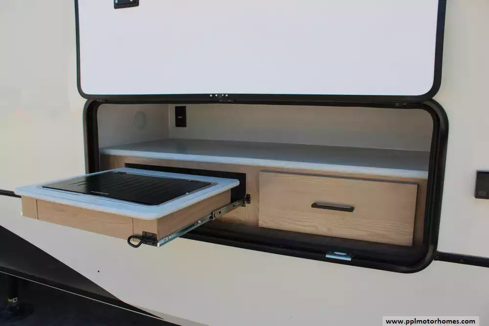 This 2023 Sanibel Wide Body 3902WB stands out as a luxurious, feature-rich, and thoughtfully designed family fifth wheel. Luxuries Include...Electric Landing Gear, 4 Slide-outs, 2 Ducted Air Conditioners, Side by Side 12v Furrion Refrigerator, Automatic Main Awning, Washer/Dryer Connections, Solar Panel, Outside Speakers, TV, Outdoor Grill, Outside Shower, Fireplace, Microwave, 4 Burner Range, and Oven.