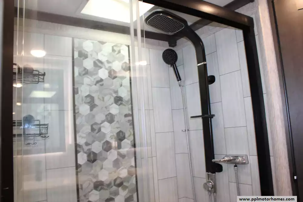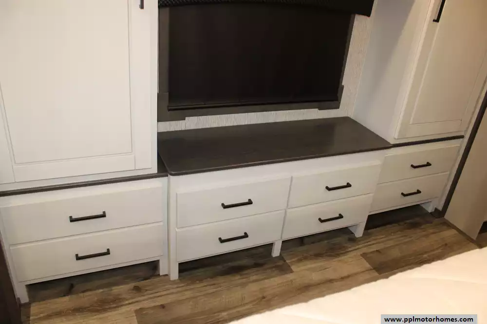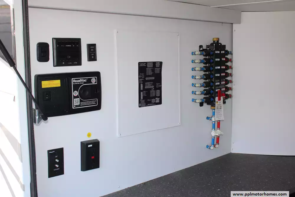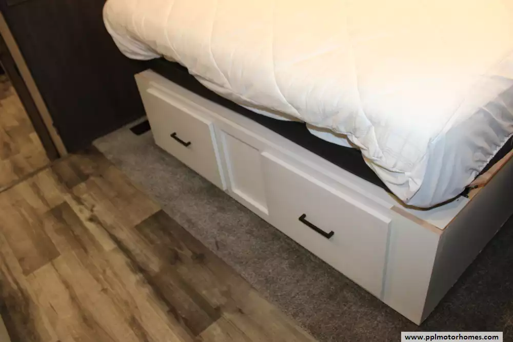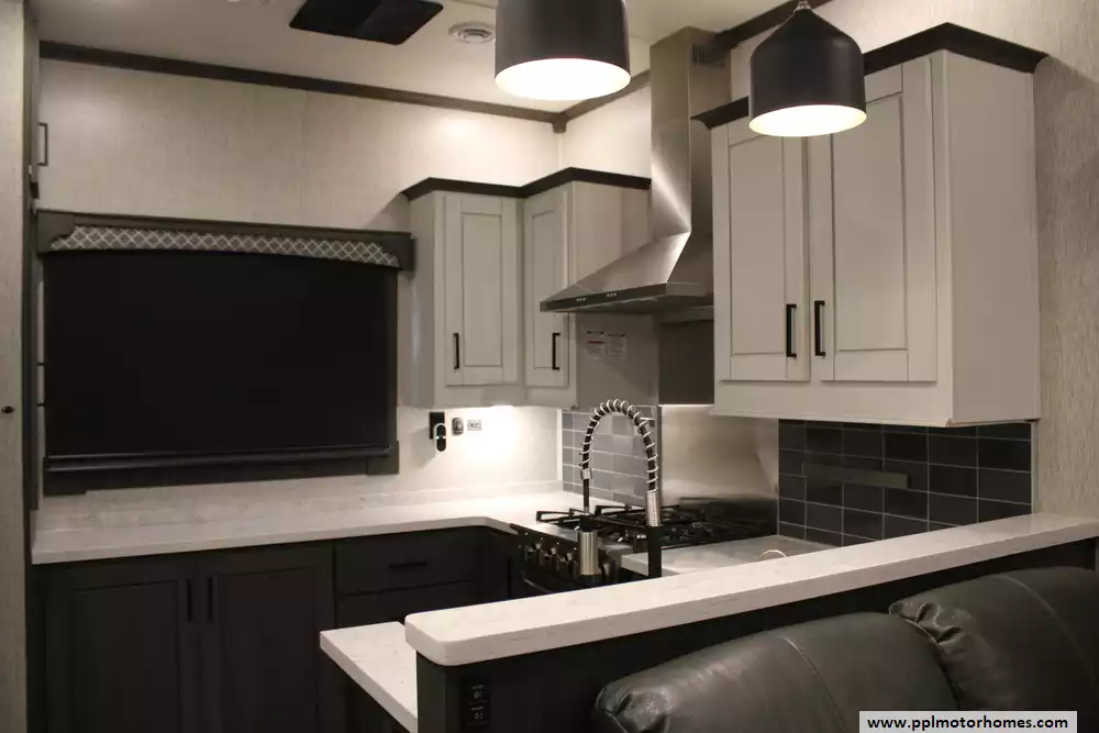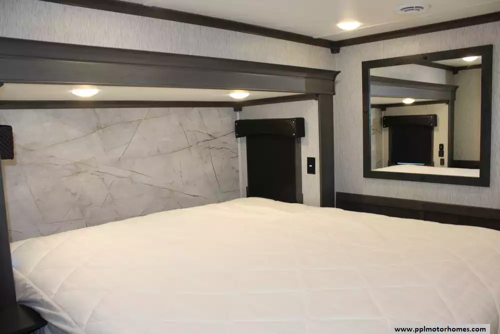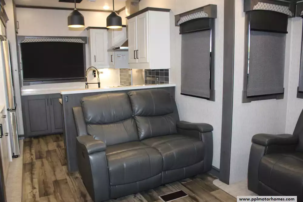 Specs: Length: 42.10 ft., Width: 8 ft., Height: 13.6 ft., Payload Capacity: 2,534 lbs., Total Fresh Water Tank Capacity: 66 gal., Total Gray Water Tank Capacity: 82 gal., Total Black Water Tank Capacity: 89 gal., Number of Propane Tanks: 2, Total Propane Tank Capacity: 30 lbs.