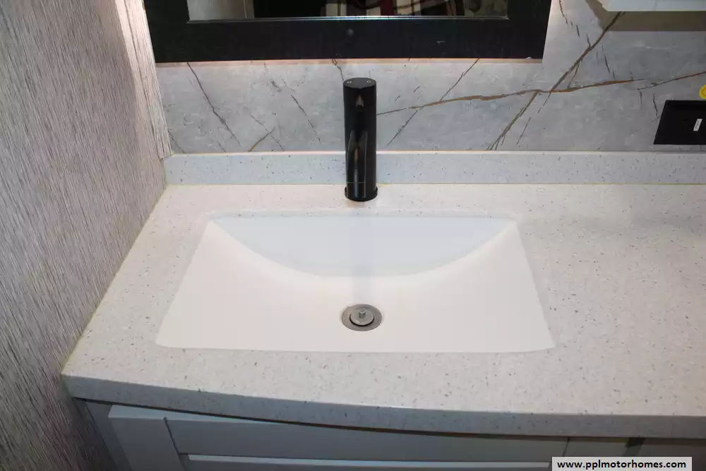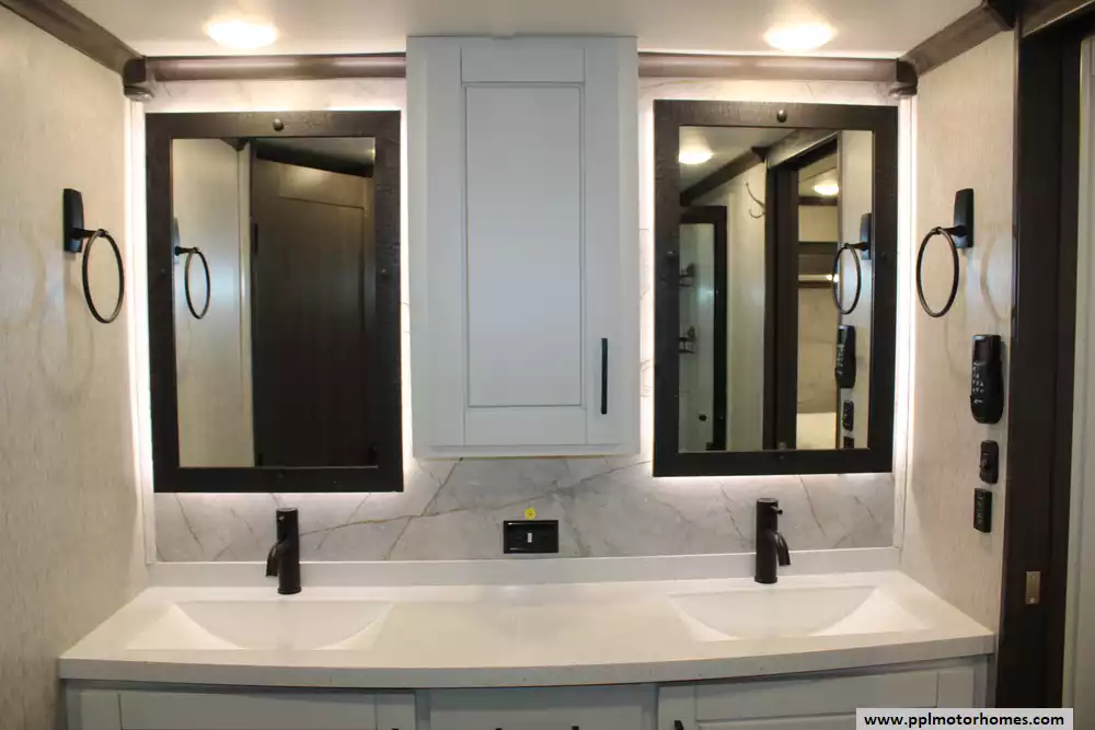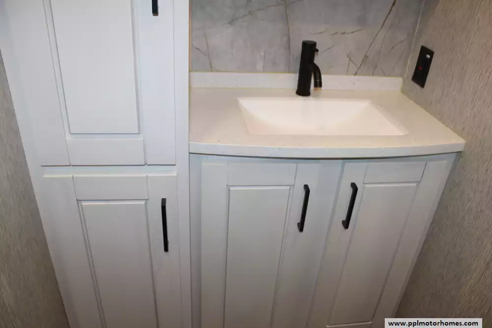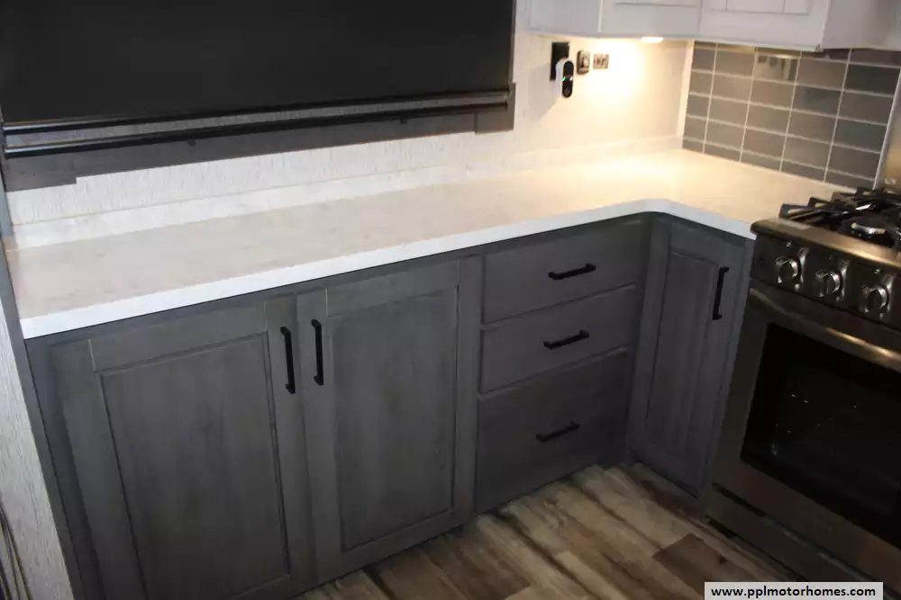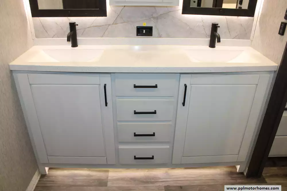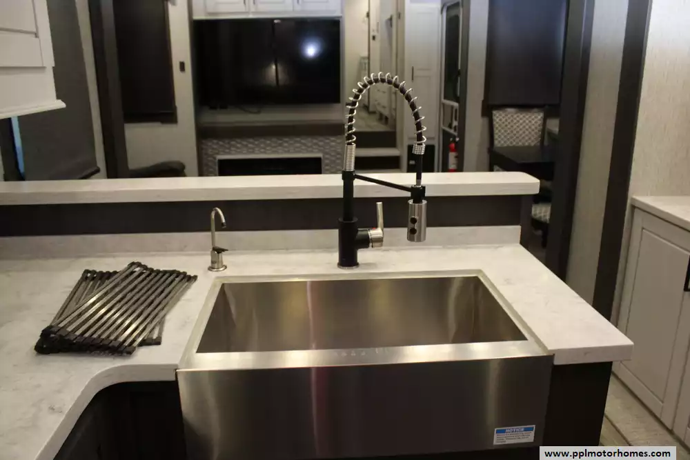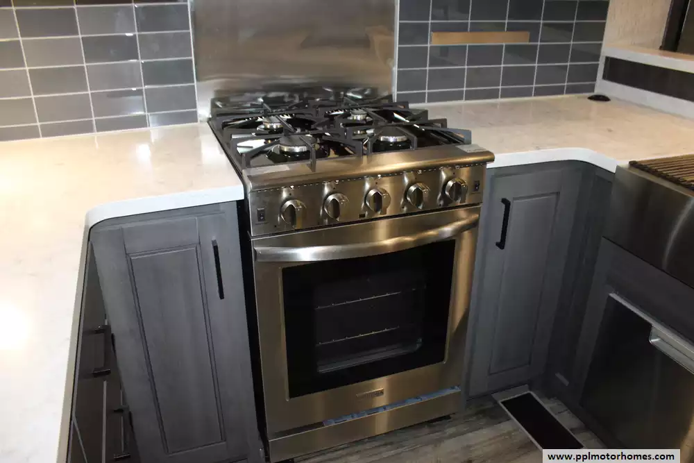 Specs: Length: 42.10 ft., Width: 8 ft., Height: 13.6 ft., Payload Capacity: 2,534 lbs., Total Fresh Water Tank Capacity: 66 gal., Total Gray Water Tank Capacity: 82 gal., Total Black Water Tank Capacity: 89 gal., Number of Propane Tanks: 2, Total Propane Tank Capacity: 30 lbs.