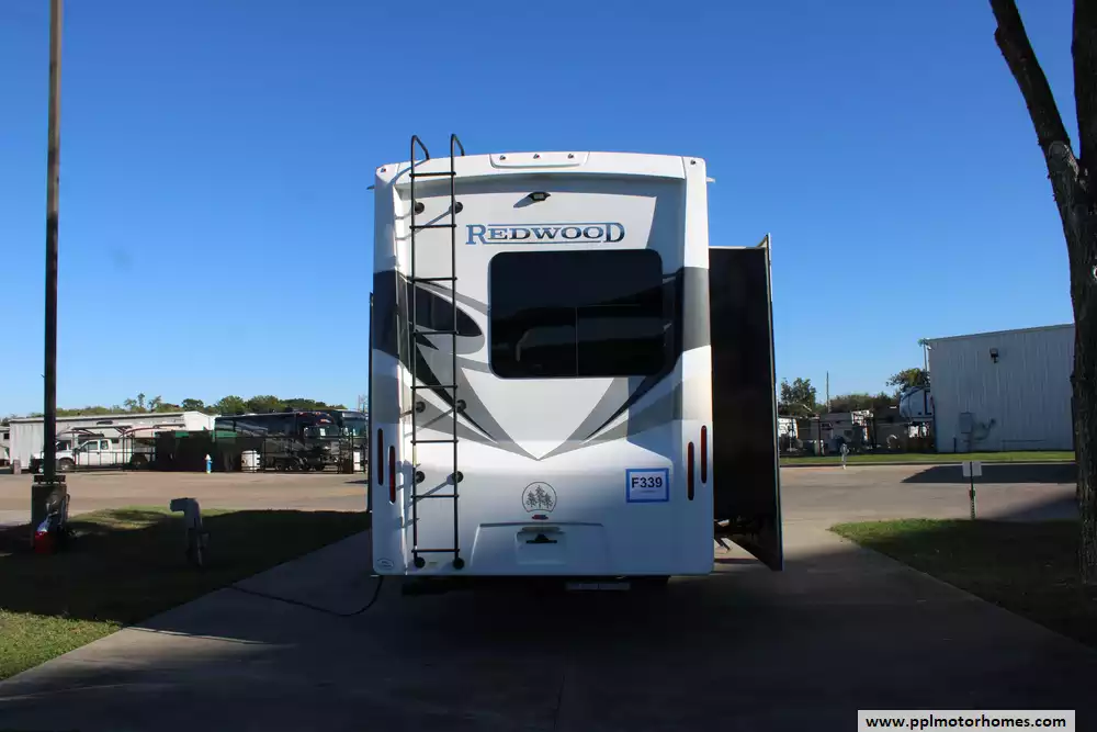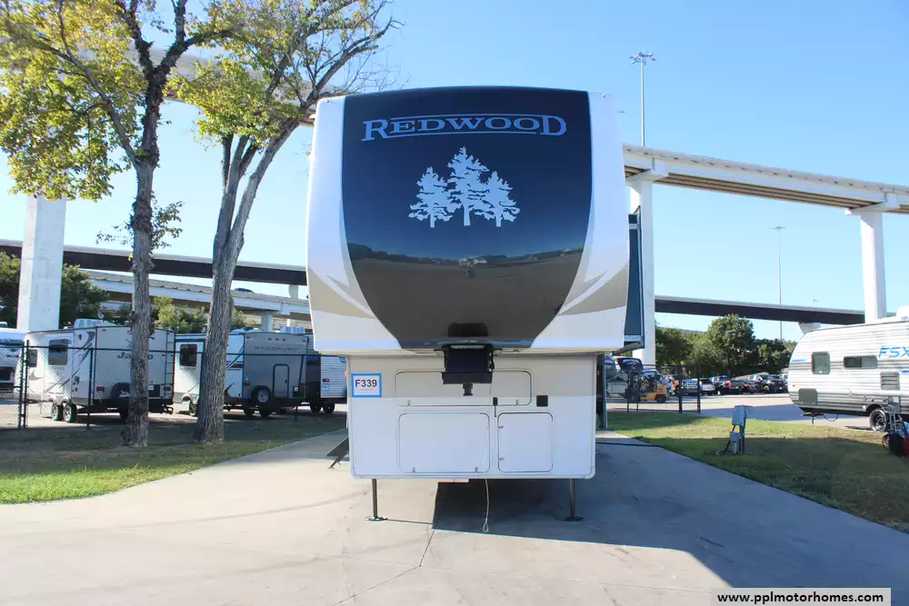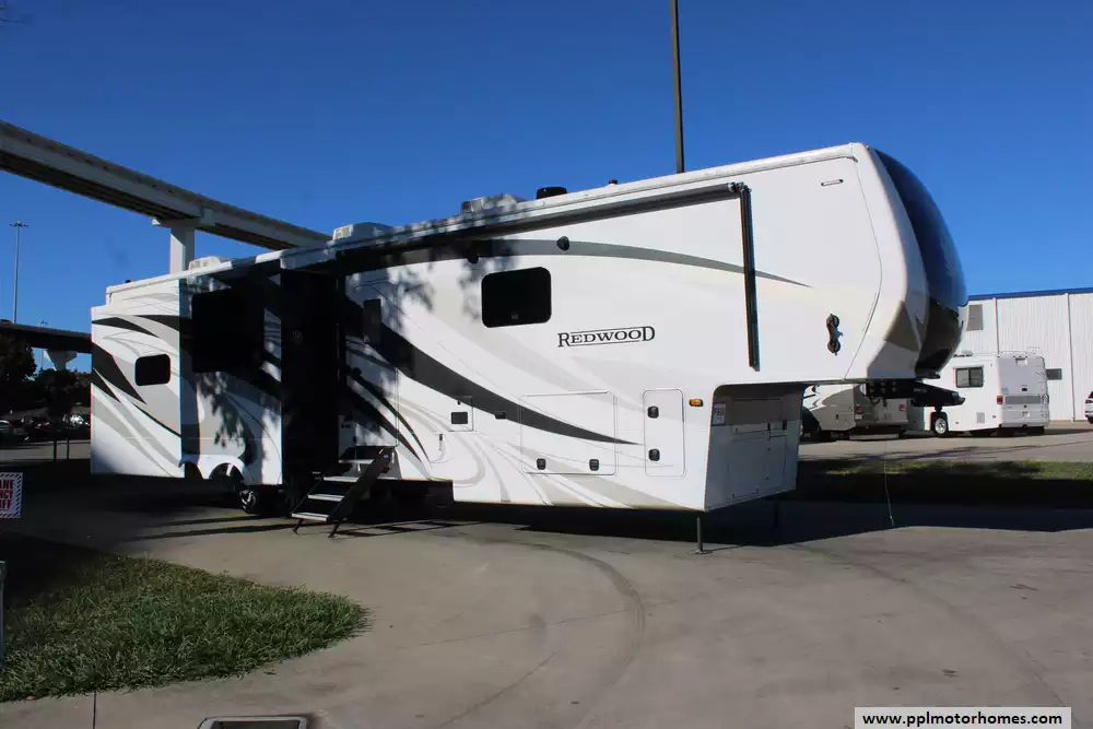 This 2023 Redwood 4001LK is ideal if you intend extended trips, full-time living, or simply want a higher level of finish and comfort. Amenities Include...Hydraulic Landing Gear, 4 Slide-outs, 3 Ducted Air Conditioners, Double Door 110v Residential Samsung Refrigerator, In-Fridge Ice Maker, Automatic Main Awning, Washer/Dryer, Dishwasher that has never been used, Outside Speakers, 2 TVs, Outside Shower, Fireplace, Central Vacuum, Convection Microwave, 4 Burner Range, and Oven.