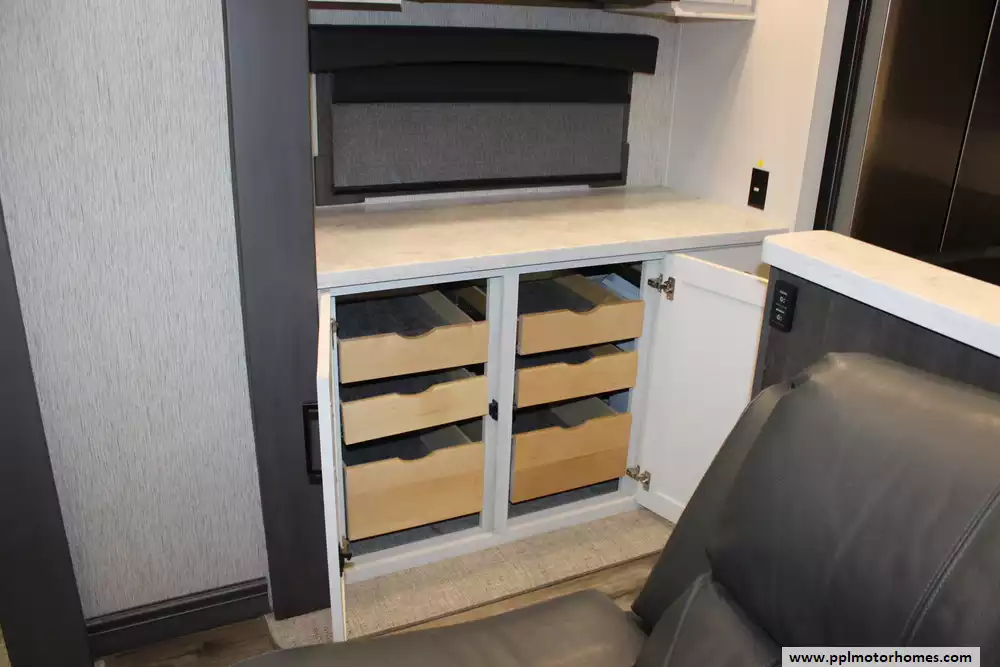(Floor plan is NOT drawn to scale. Length of vehicle is approximate. Buyer is responsible for verifying actual length. PPL Motor Homes compiled this list of features, specifications, equipment and options as a guide. No representation or warranties, either express or implied, are made as to the accuracy of the information herein. Please verify for yourself all items listed before purchase.)