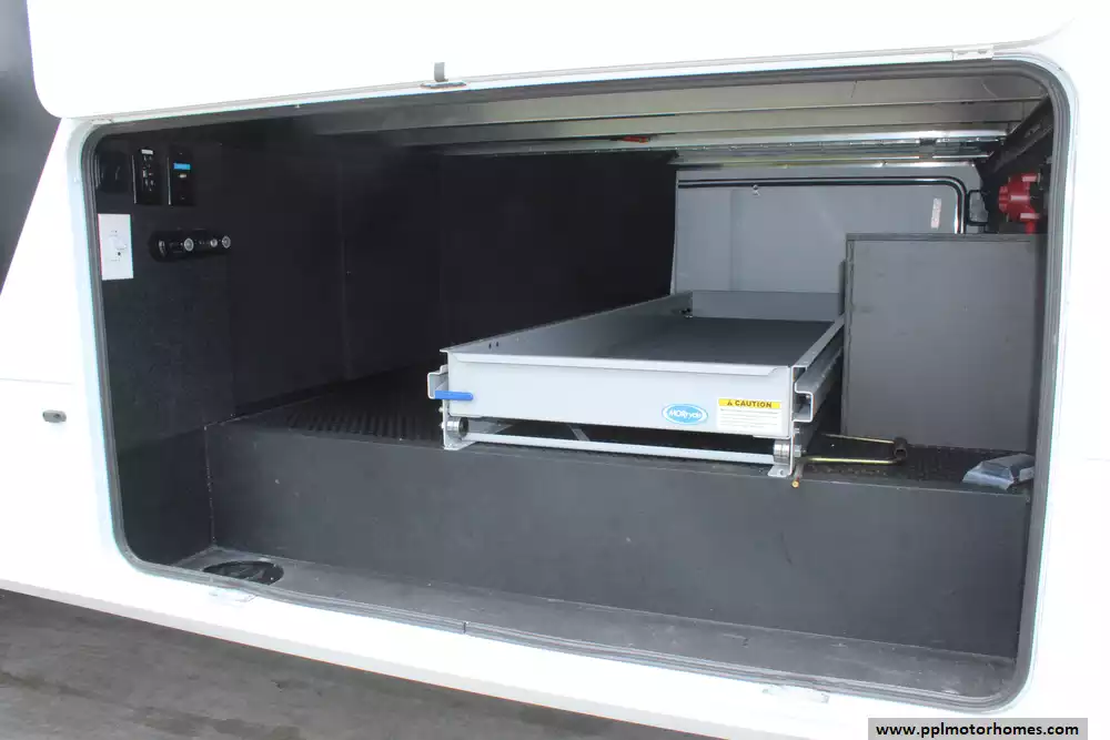 Another upgrade is a MORryde cargo slide in the belly that is bidirectional for easy cargo access from either side of the unit.