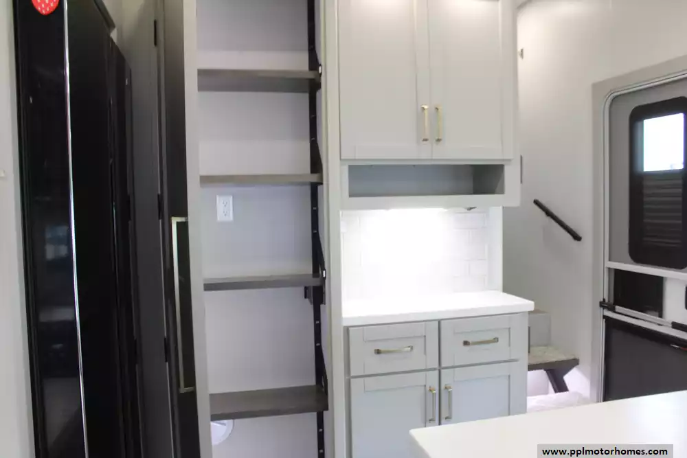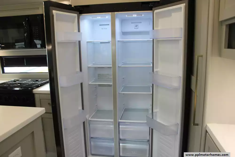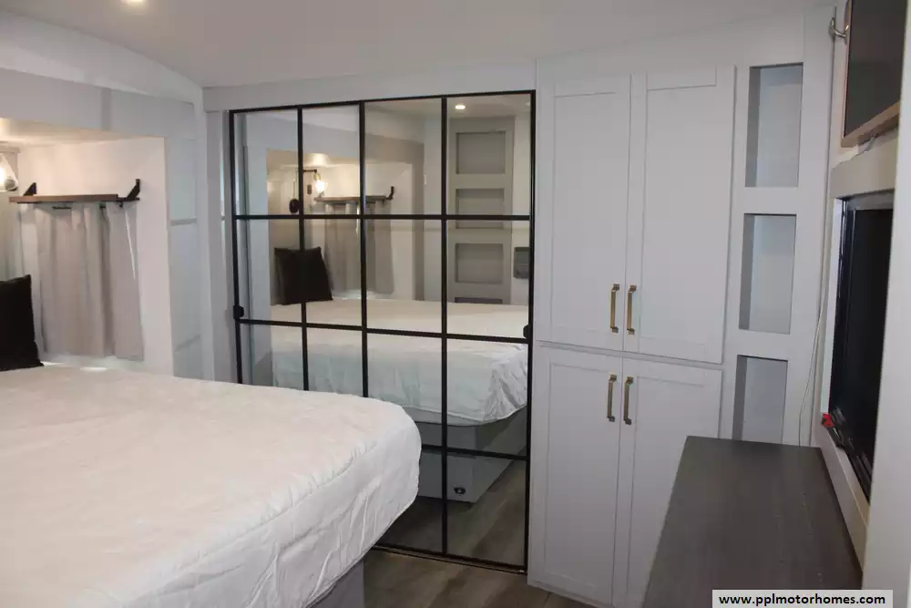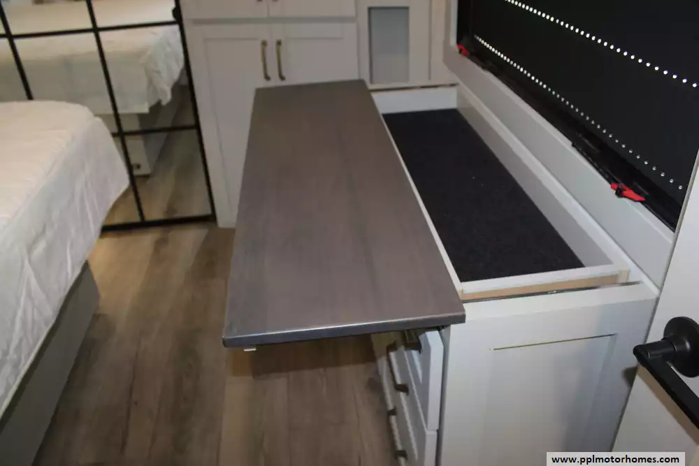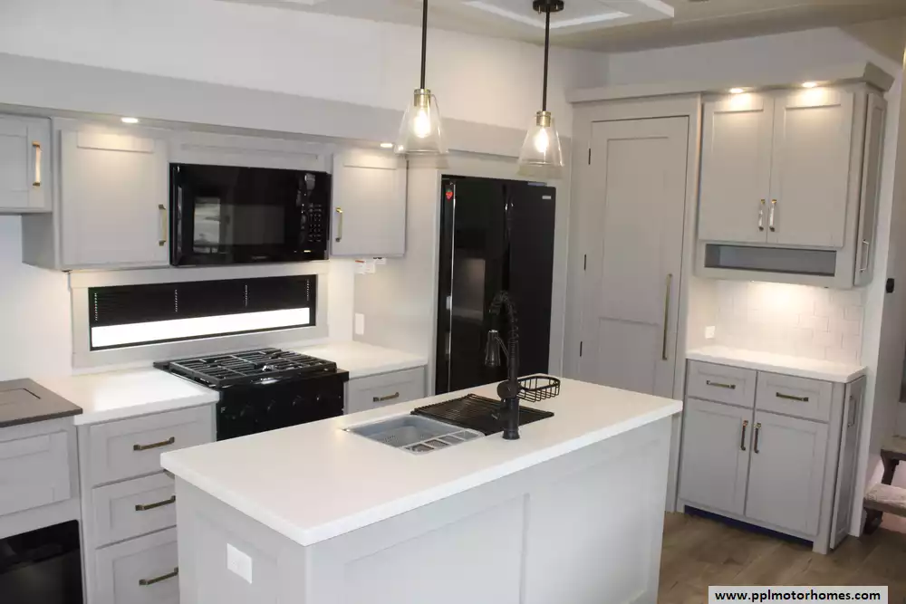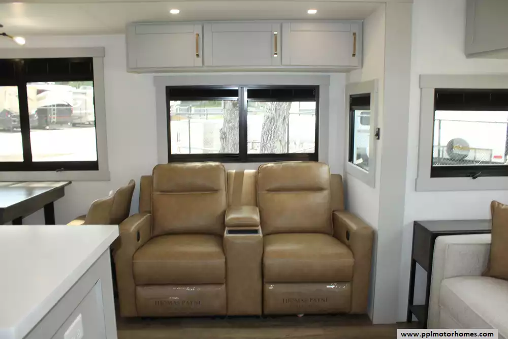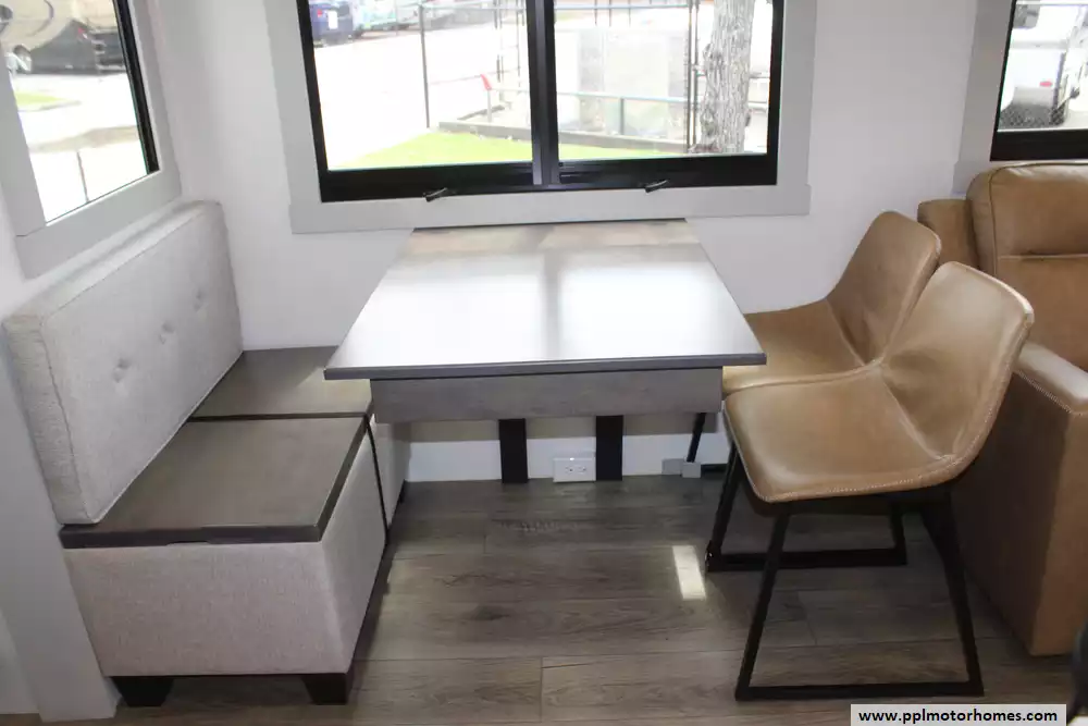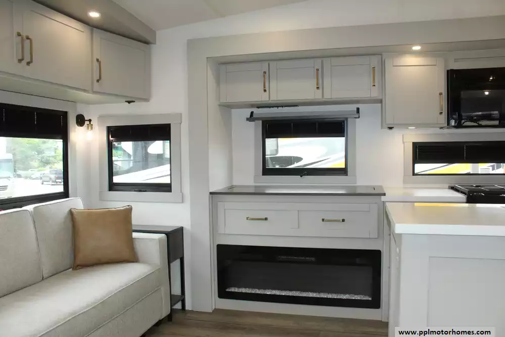 The interior of the Z 3100 is designed for those who refuse to compromise on comfort, featuring premium finishes and a large refrigerator to keep your supplies fresh for long-haul adventures. Known for its clean aesthetic and focus on functional luxury, this model balances sophisticated style with rugged durability. From the sleek frameless windows to the thoughtfully engineered storage solutions, every detail of the Brinkley Z 3100 is crafted to provide a seamless and elevated travel experience for the discerning RVer.
