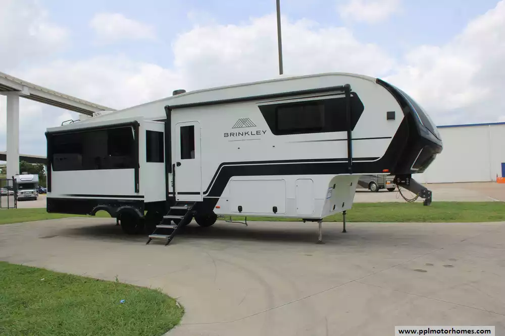 Experience the pinnacle of mid-profile luxury with the 2024 Brinkley Z 3100. Brinkley has quickly set a new industry standard with its automotive-inspired exterior and residential-grade interior design, earning a reputation for meticulous craftsmanship and owner-driven innovation. This 34-foot fifth wheel offers an incredibly spacious living area facilitated by three deep slide-outs, creating an open-concept environment that feels less like a traditional camper and more like a modern, high-end home.