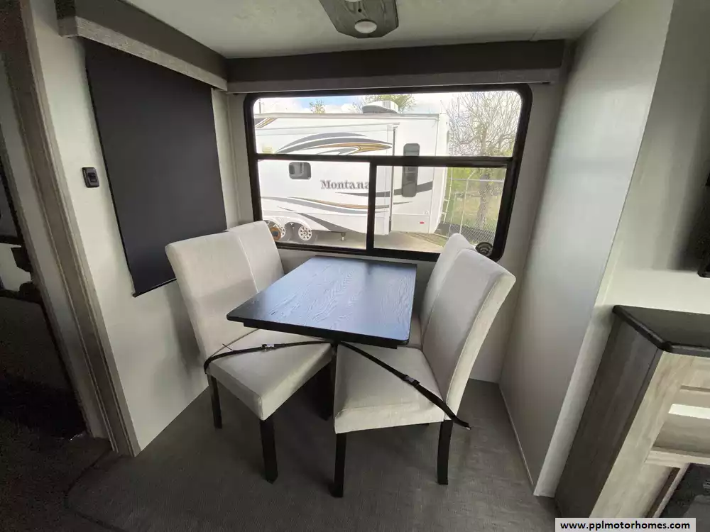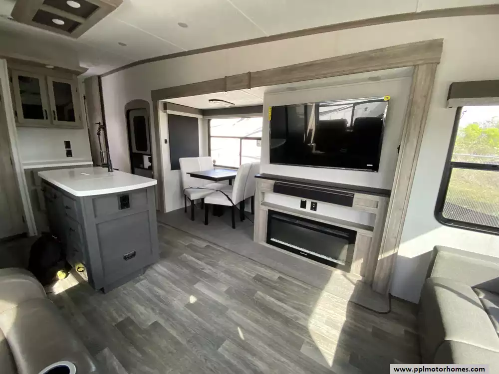 The interior is designed for both entertaining and extended stays, anchored by a gourmet-style kitchen featuring a double door 12v residential Furrion refrigerator, a microwave, an oven, and a three-burner range. You can unwind in the spacious living area by the cozy fireplace or enjoy the included TV, all while staying perfectly cool in any climate with two ducted air conditioners. The outdoor experience is just as impressive, boasting an automatic main awning for effortless shade, a convenient outdoor kitchen for al fresco dining, and an outside shower for easy cleanup after a day of adventure. Combining premium amenities with the rugged durability the Chaparral name is known for, this 298RLS is ready to elevate your next Great American getaway.