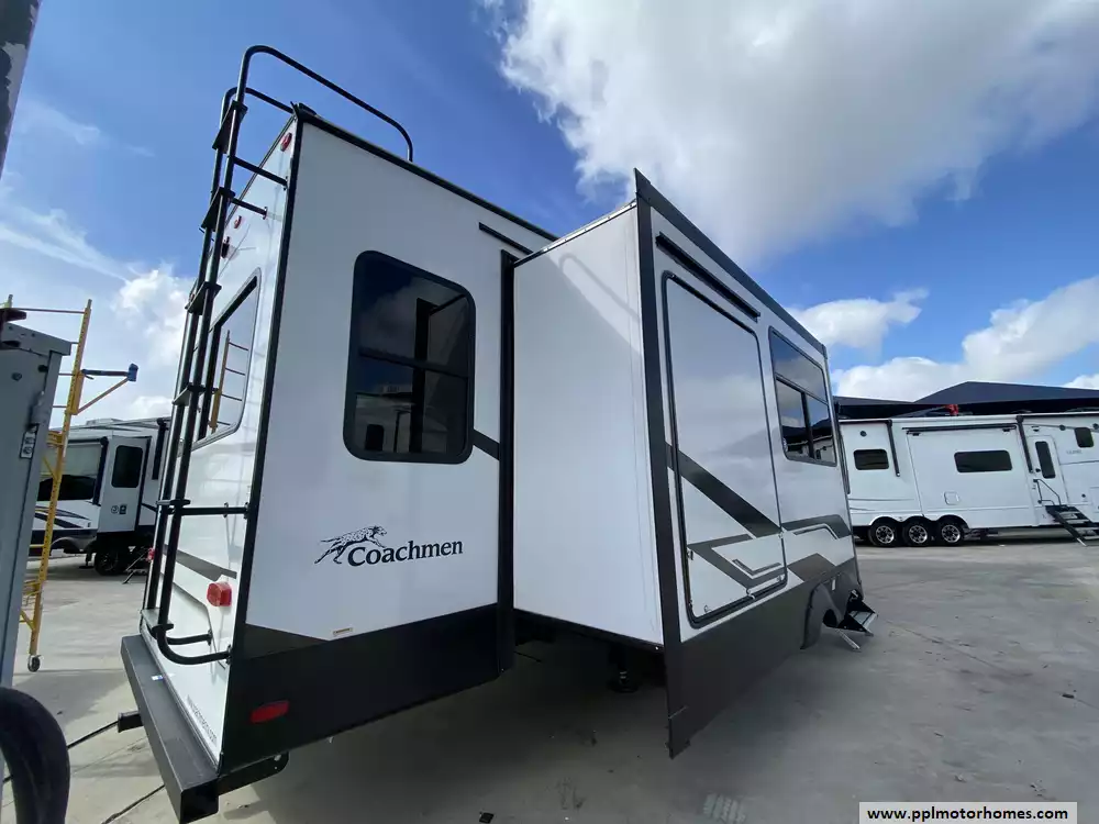 Experience the pinnacle of mid-profile luxury with the 2024 Coachmen Chaparral 298RLS, a flagship model celebrated for its lightweight towing capability and superior construction. Built with high-quality fiberglass and a durable TPO roof, this fifth wheel is engineered for long-term reliability and multi-season comfort. Coachmen's reputation for excellence shines through in the 298RLS, which features three expansive slide-outs that transform the interior into a sprawling residential retreat. Setting up your campsite is faster and easier than ever thanks to the integrated electric landing gear, allowing you to focus on the journey ahead.