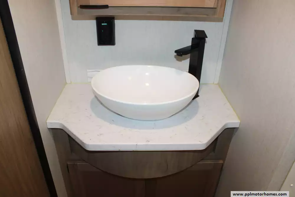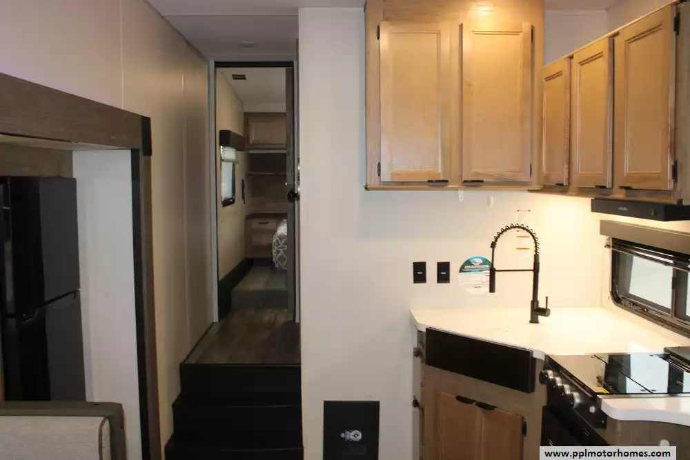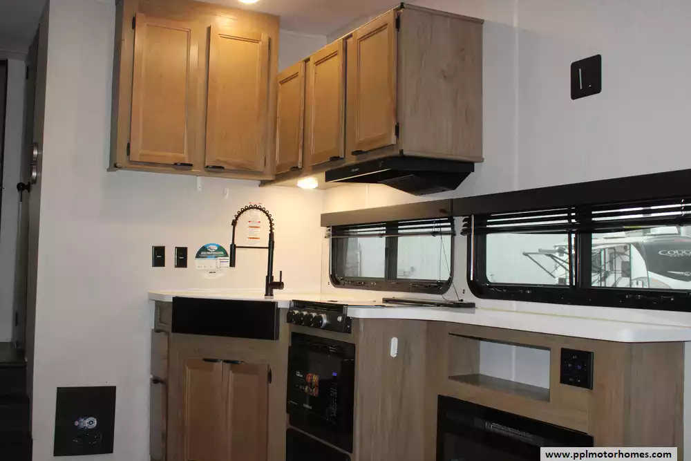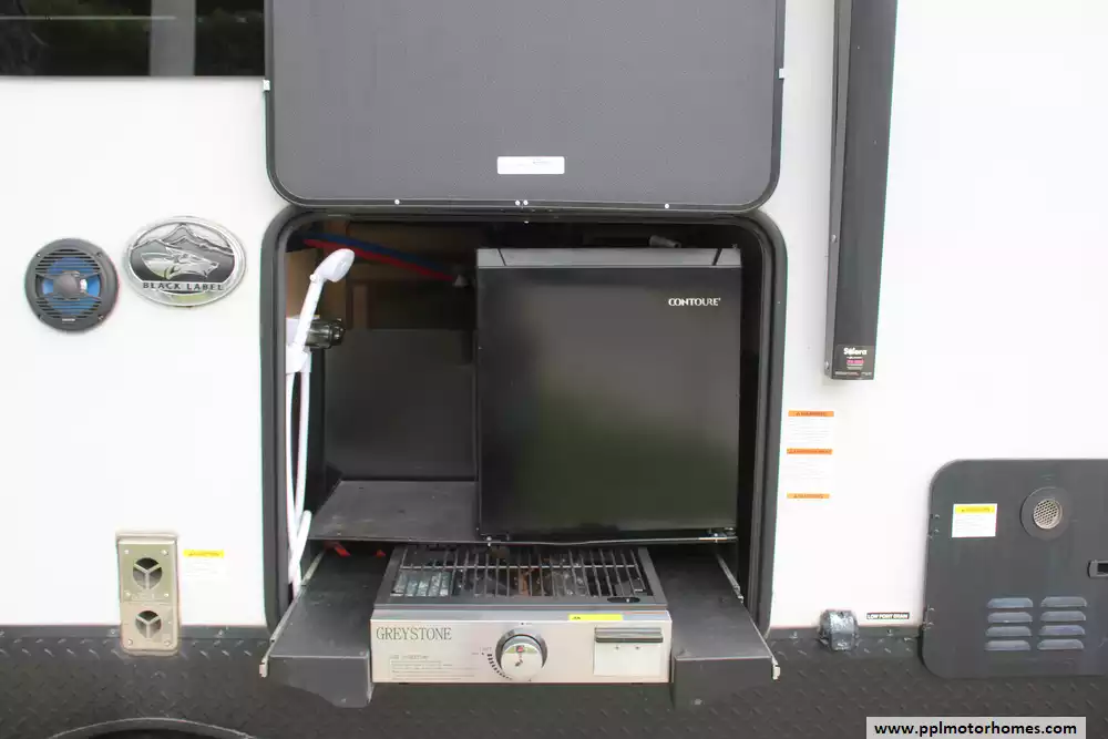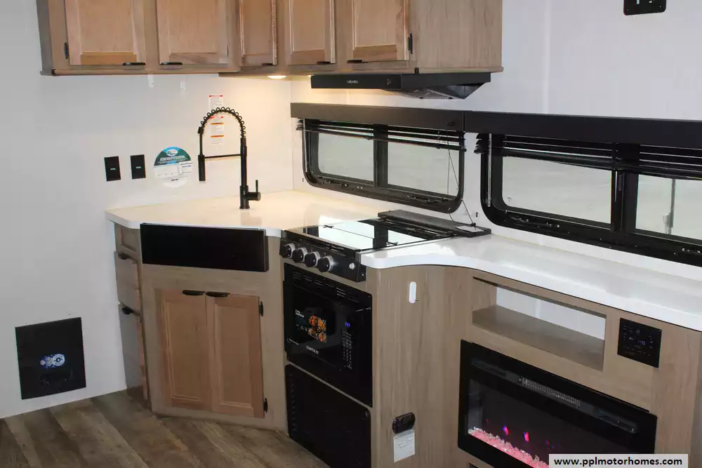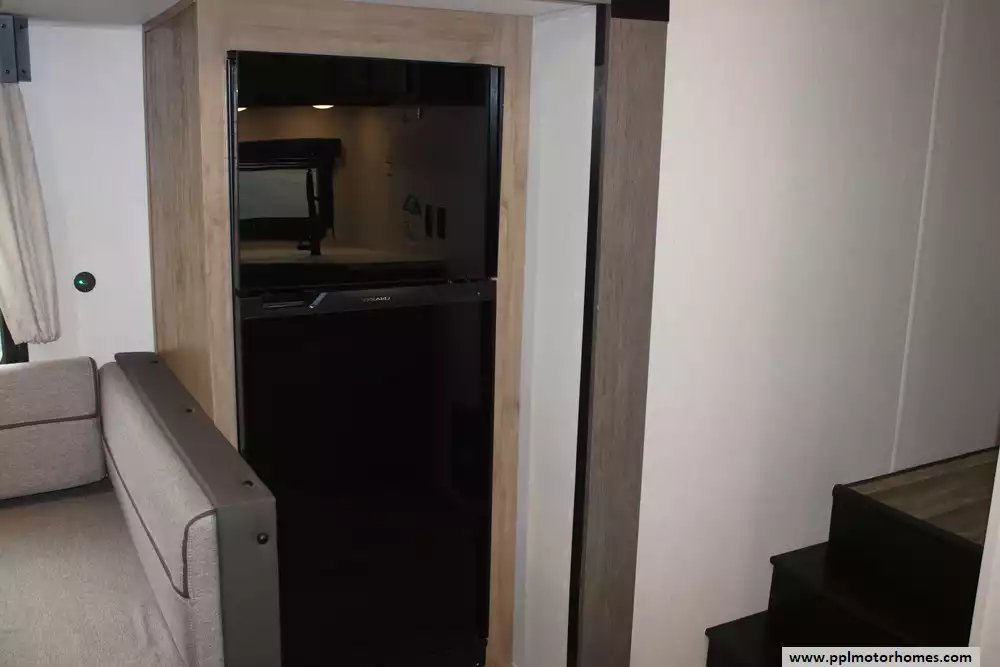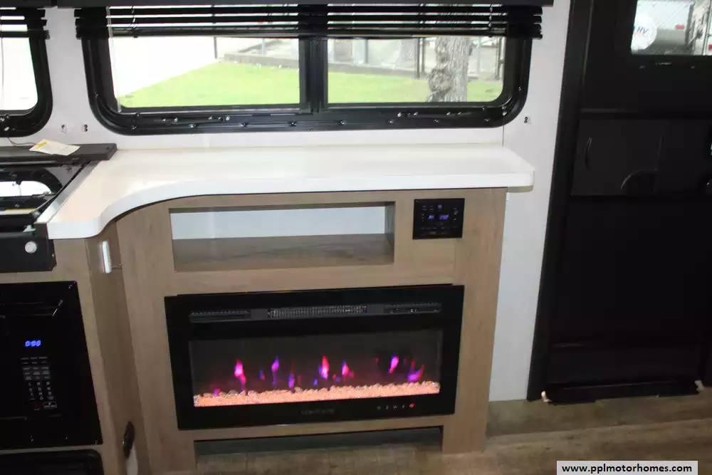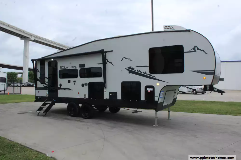 The interior offers a refined retreat, centered around a spacious slide-out that opens up the living area for maximum comfort. You will stay perfectly cool in any weather thanks to the dual ducted air conditioners, while the built-in fireplace adds a touch of warmth and ambiance on chilly evenings. The galley is fully equipped for the home cook with a double door refrigerator, three-burner range, and a convection microwave. Combining the upscale finishes the Black Label line is known for with practical features like optimized storage and modern appliances, the 245TRBL is the ideal choice for travelers who refuse to compromise on luxury.