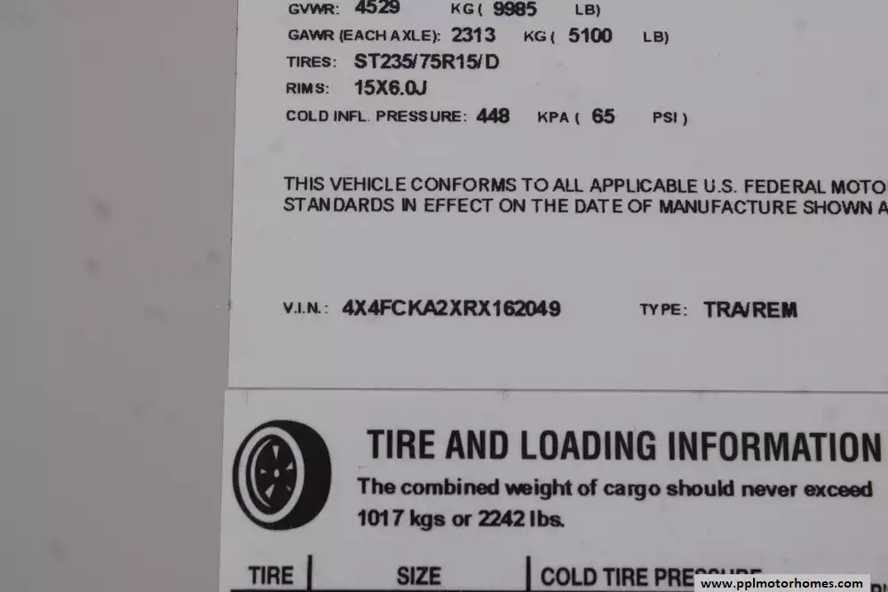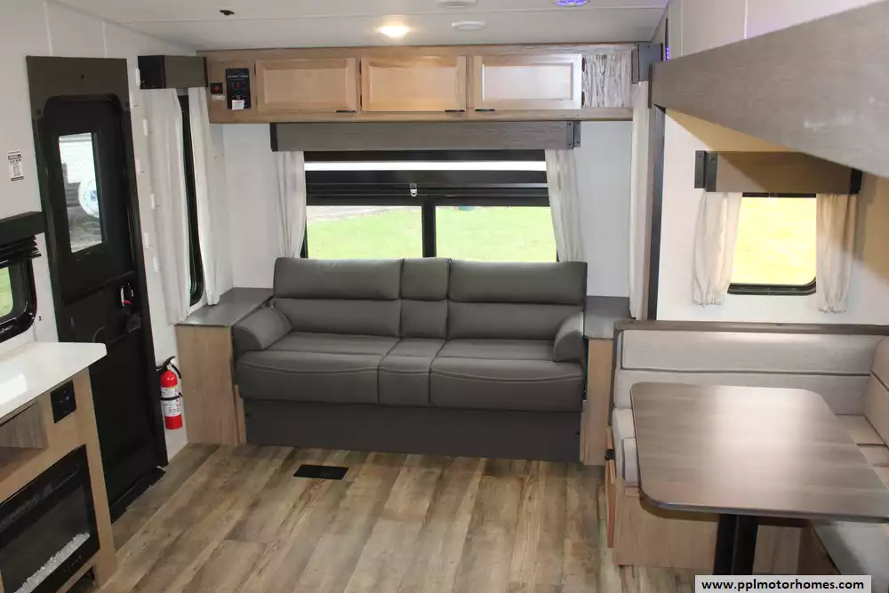 Specs: Length: 29.10 ft., Height: 12.10 ft., Width: 8 ft., Payload Capacity: 2,572 lbs., Total Fresh Water Tank Capacity: 38 gal., Total Grey Tank Capacity: 40 gal., Total Black Water Tank Capacity: 38 gal.