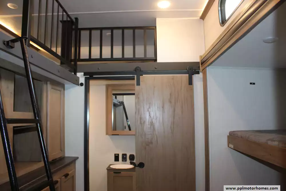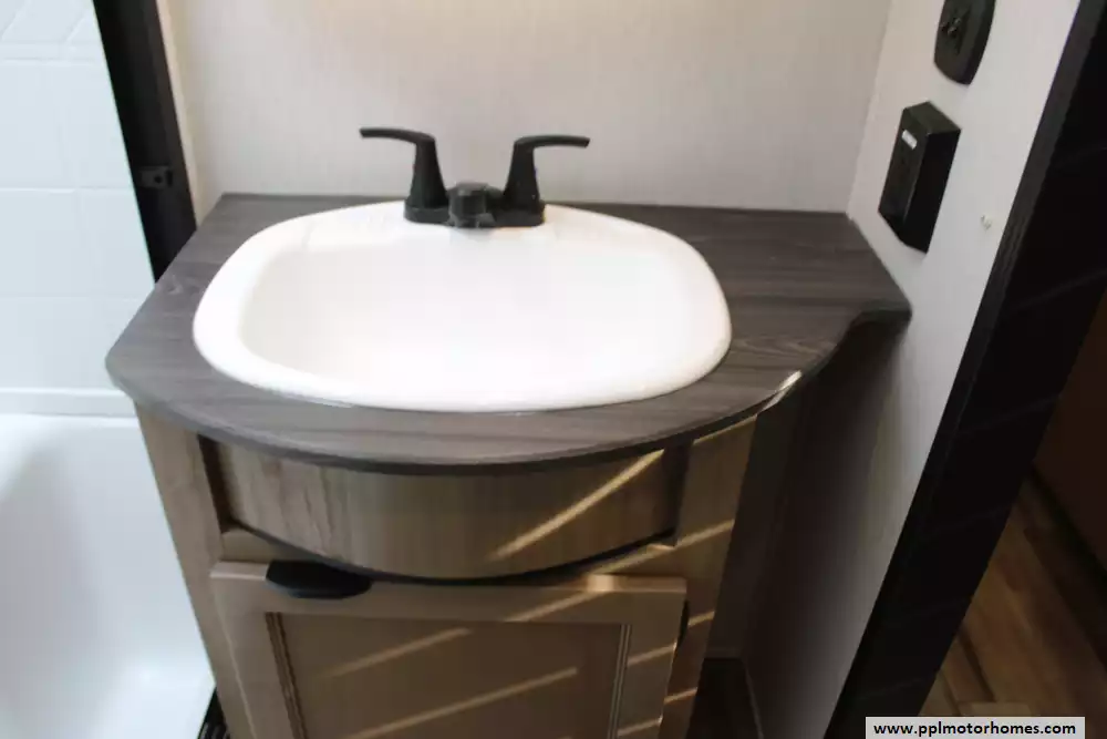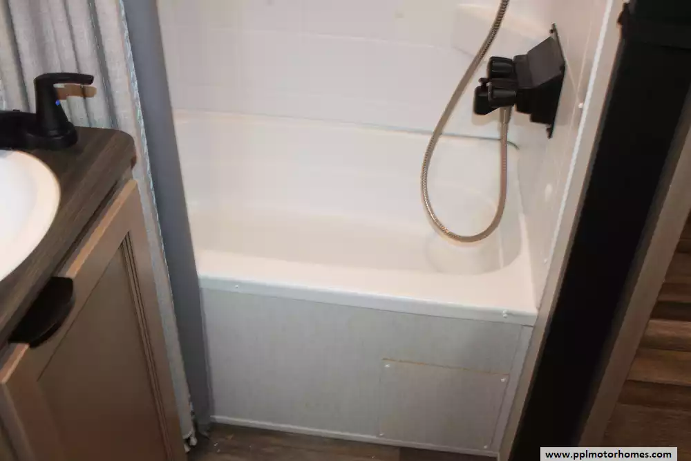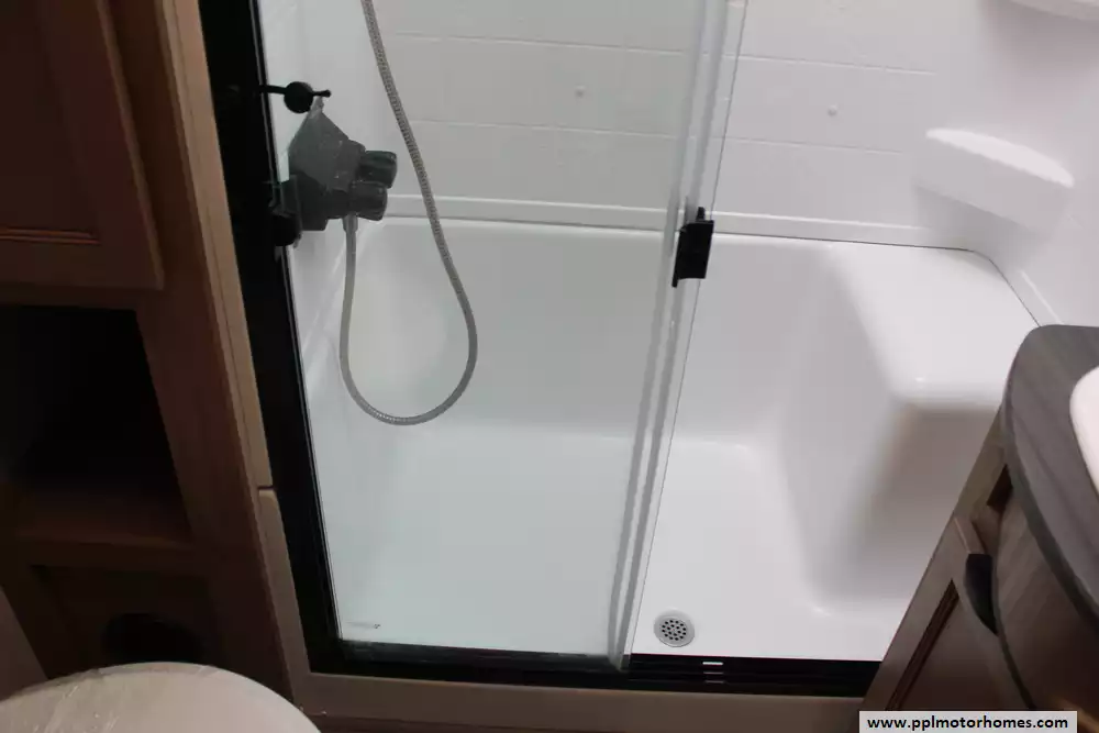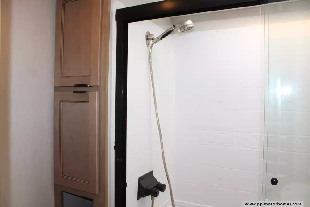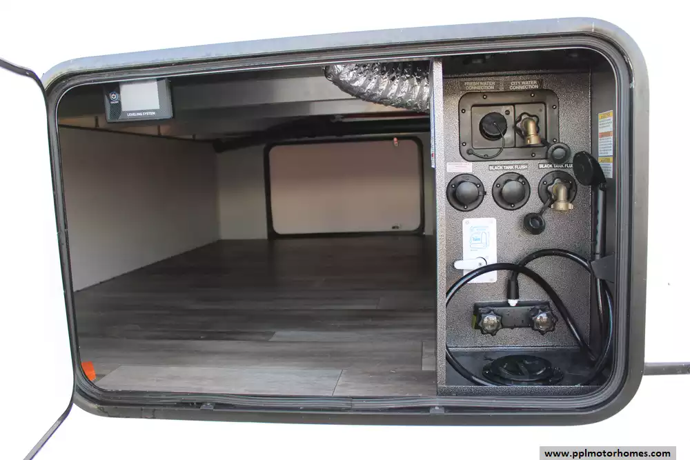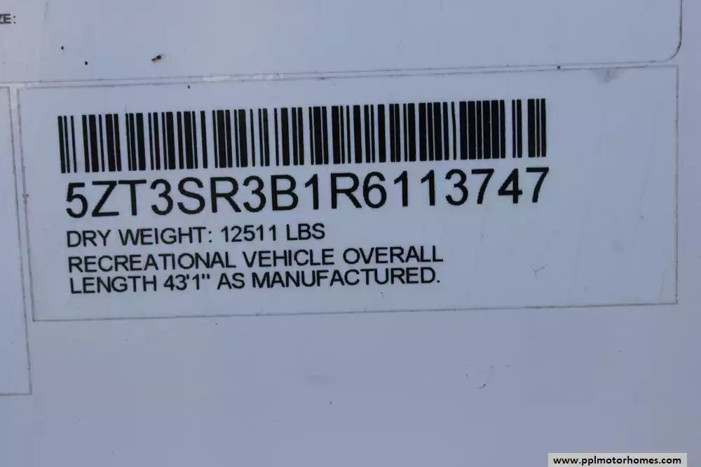 Specs: Length: 42.8 ft., Width: 8 ft., Height: 13.5 ft., Payload Capacity: 2,800 lbs., Total Fresh Water Tank Capacity: 49 gal., Total Gray Water Tank Capacity: 106 gal., Total Black Water Tank Capacity: 68 gal.