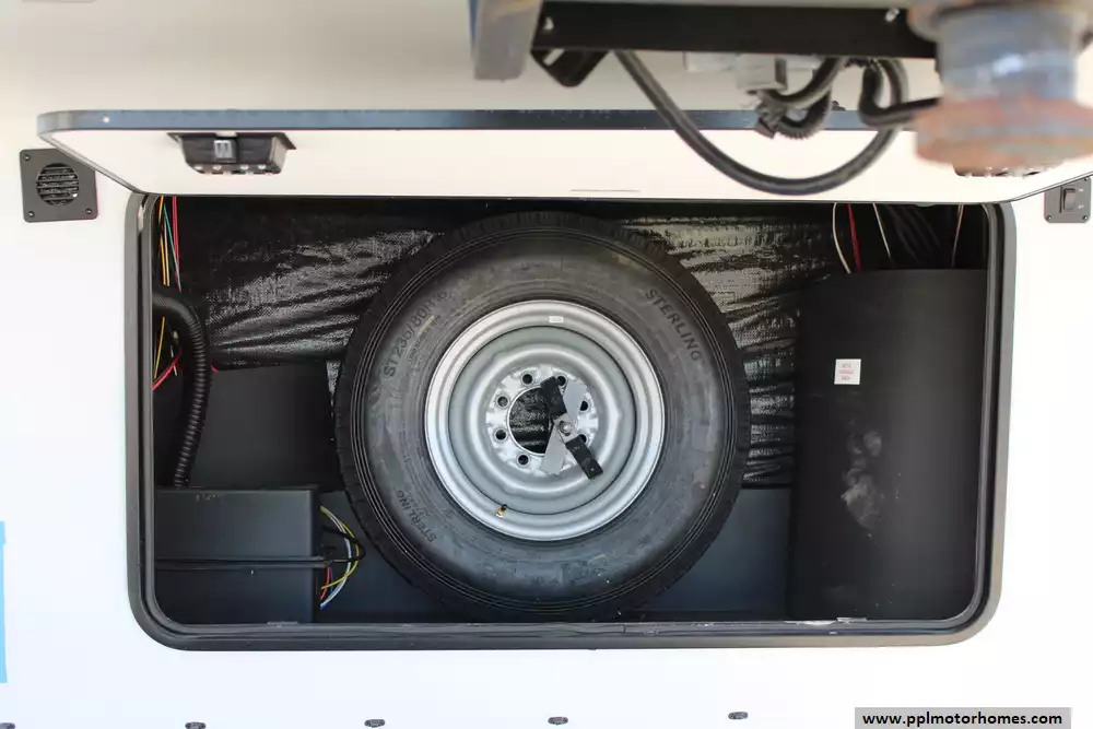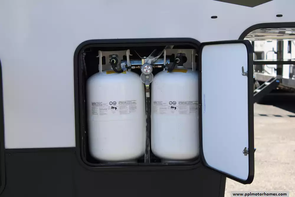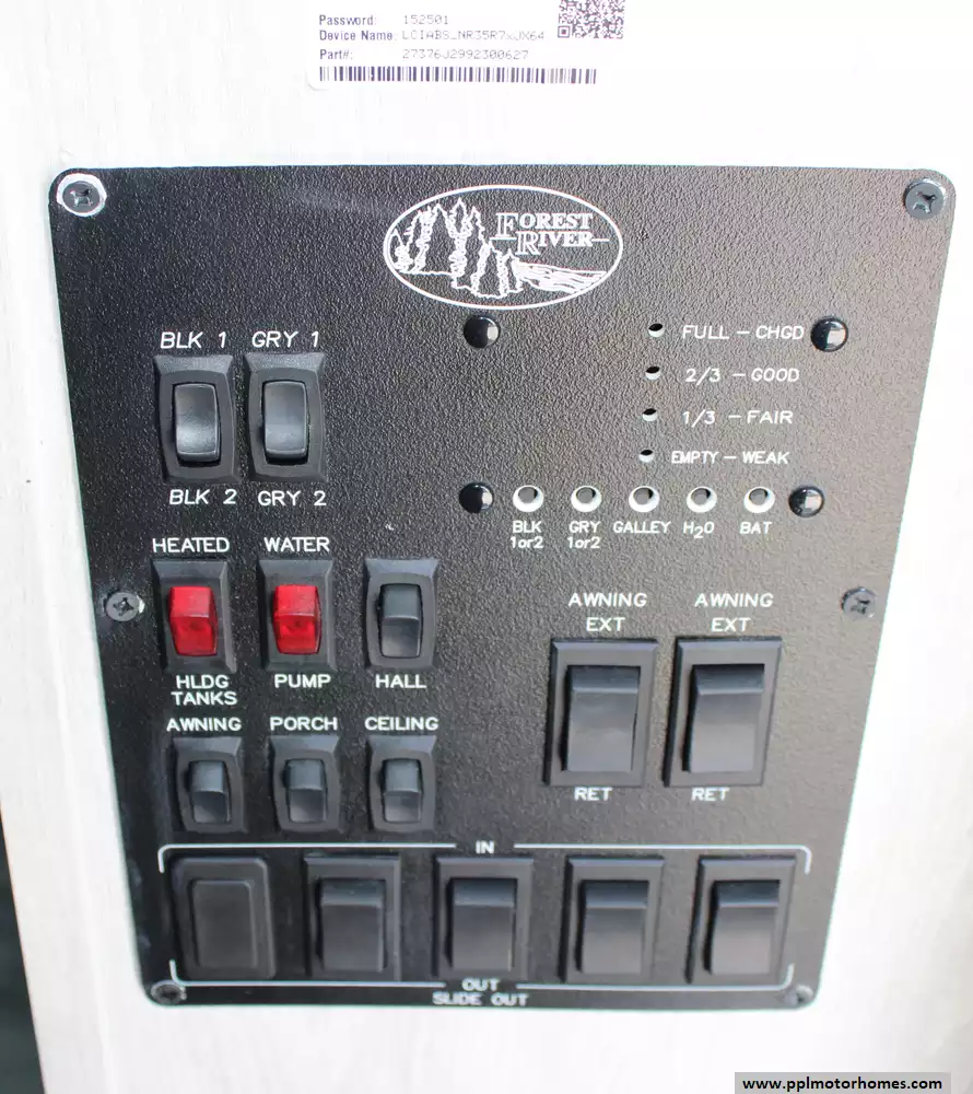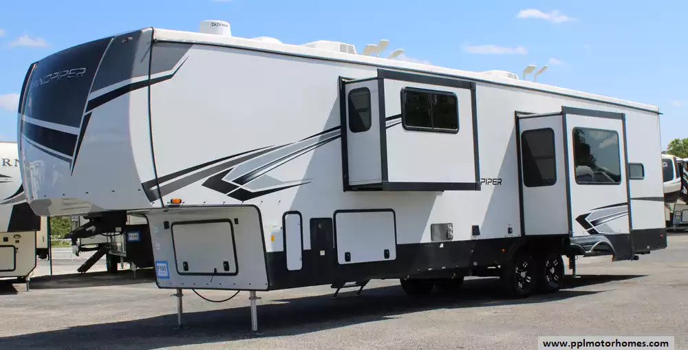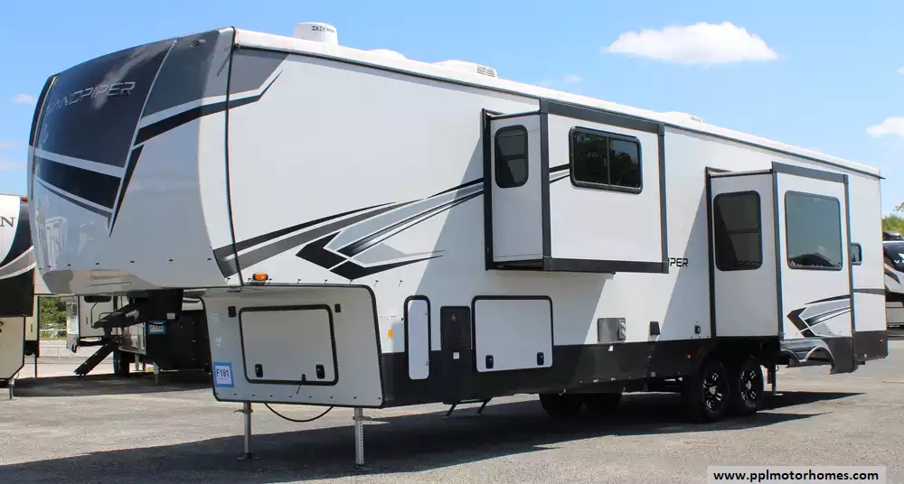 This unit is fully outfitted for travel and comfort, featuring dual whisper-quiet A/C units, dual power awnings with LED lighting, backup camera, roof tarp protector, tripod, and on-the-go ladder prep. Outside you'll also find a custom skirt around the unit for extra protection and style, plus abundant pass-through storage for gear. With its luxury features, thoughtful upgrades, and Forest River's reputation for quality, the Sandpiper 3800RK is the ultimate choice for buyers who want a fifth wheel that's road-ready, adventure-ready, and home-like all at once.