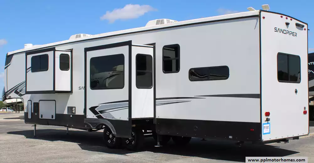 The 2024 Forest River Sandpiper 3800RK is a luxury fifth wheel built for travelers who want both elegance and practicality in their RV lifestyle. Measuring over 40 feet, this spacious triple-slide model features a rear kitchen layout that blends residential comfort with modern design. Constructed for extended trips or even full-time living, the Sandpiper offers the durability and premium build quality Forest River is known for. Sleeping up to 4, it's a perfect fit for couples or small families who want maximum space and convenience while on the road.