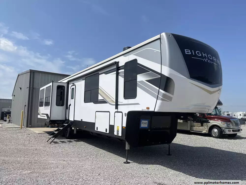 Got big plans this up coming season? Your dream camper is here at PPL Motorhomes! This 2024 Bighorn M-3880MD is equipped with a Hydraulic Landing Gear, 4 Slide-outs, 2 Ducted Air Conditioners, 4 Door Side by Side 110v Residential Furrion Refrigerator, In-Fridge Ice Maker, Automatic Main Awning, Washer/Dryer Connections, Solar Panel, Heated Tanks, TV, Outside Shower, Fireplace, Convection Microwave, 3 Burner Range, and an Oven! Start packing for your next vacation and visit us here in El Reno, Oklahoma TODAY!!!