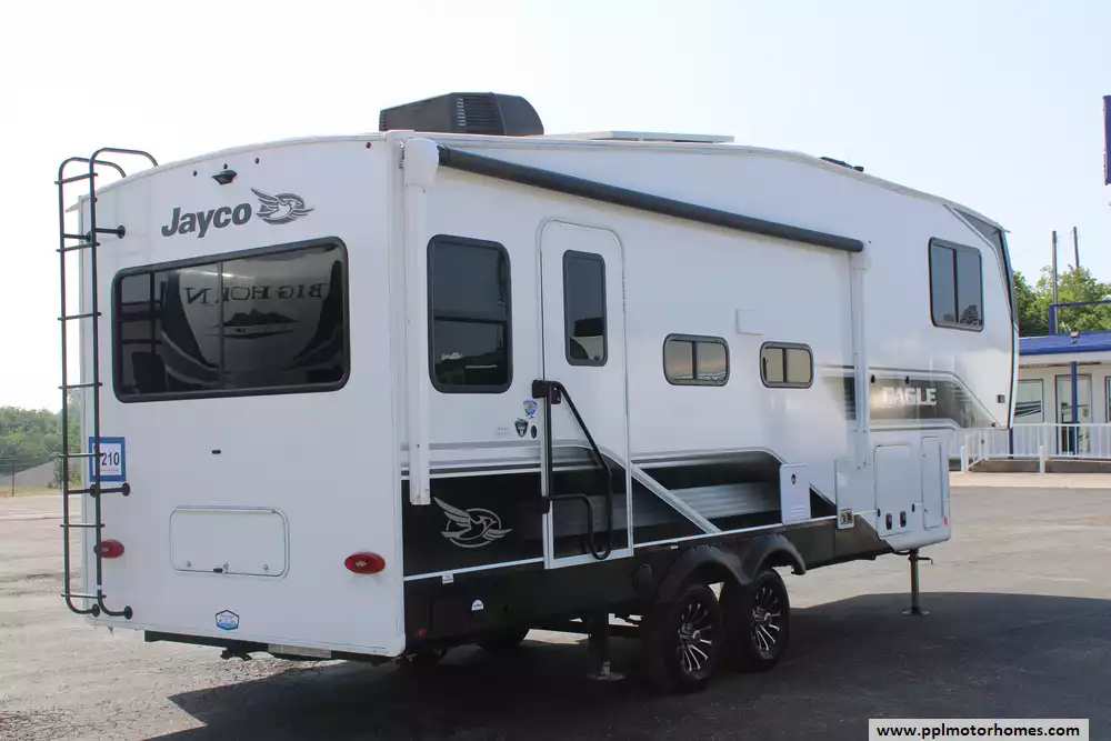 2024 Jayco Eagle HT 25RUC (Fifth Wheel)Hit the road in comfort and confidence with the 2024 Jayco Eagle HT 25RUC A premium half-ton towable fifth wheel that brings together upscale features, smart storage, and rugged durability in one adventure-ready package. This unit features a beautifully designed rear kitchen with a 10 cu. ft. 12V refrigerator, microwave, pantry, and overhead cabinetry. The booth dinette offers a comfortable spot for meals or game night, while the plush theater seating creates the perfect setup for movie marathons or laid-back evenings.