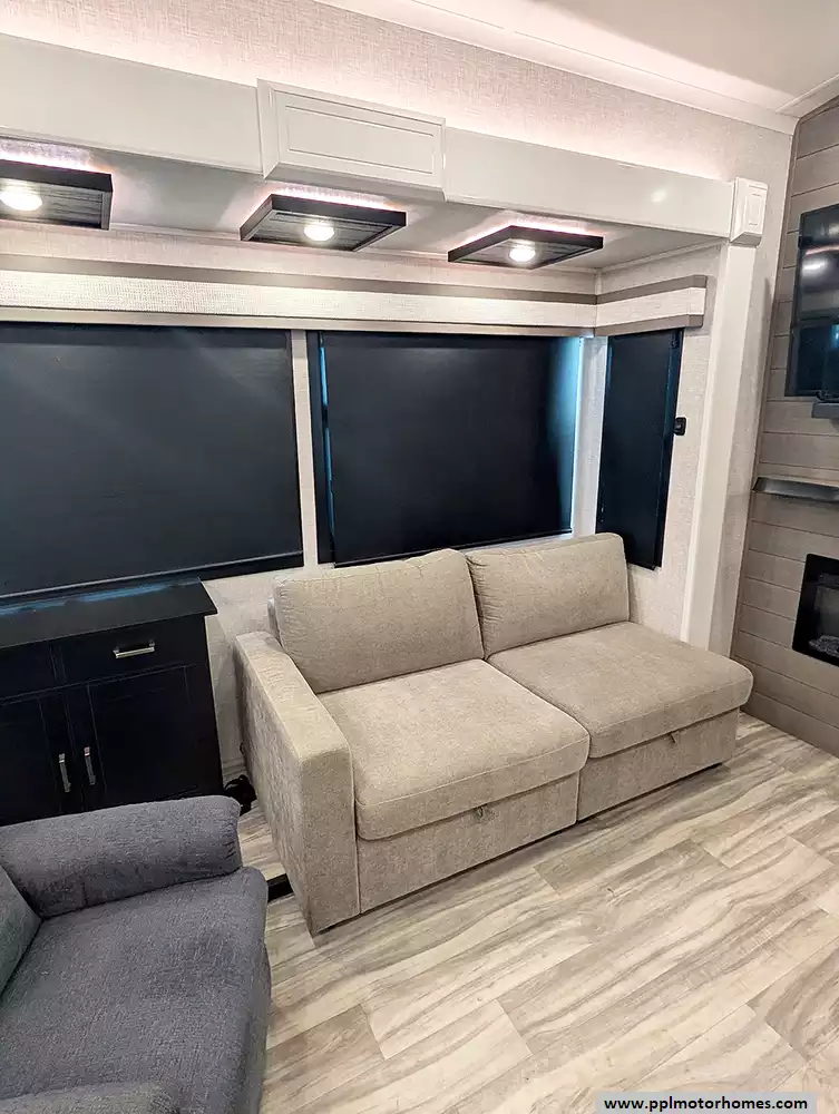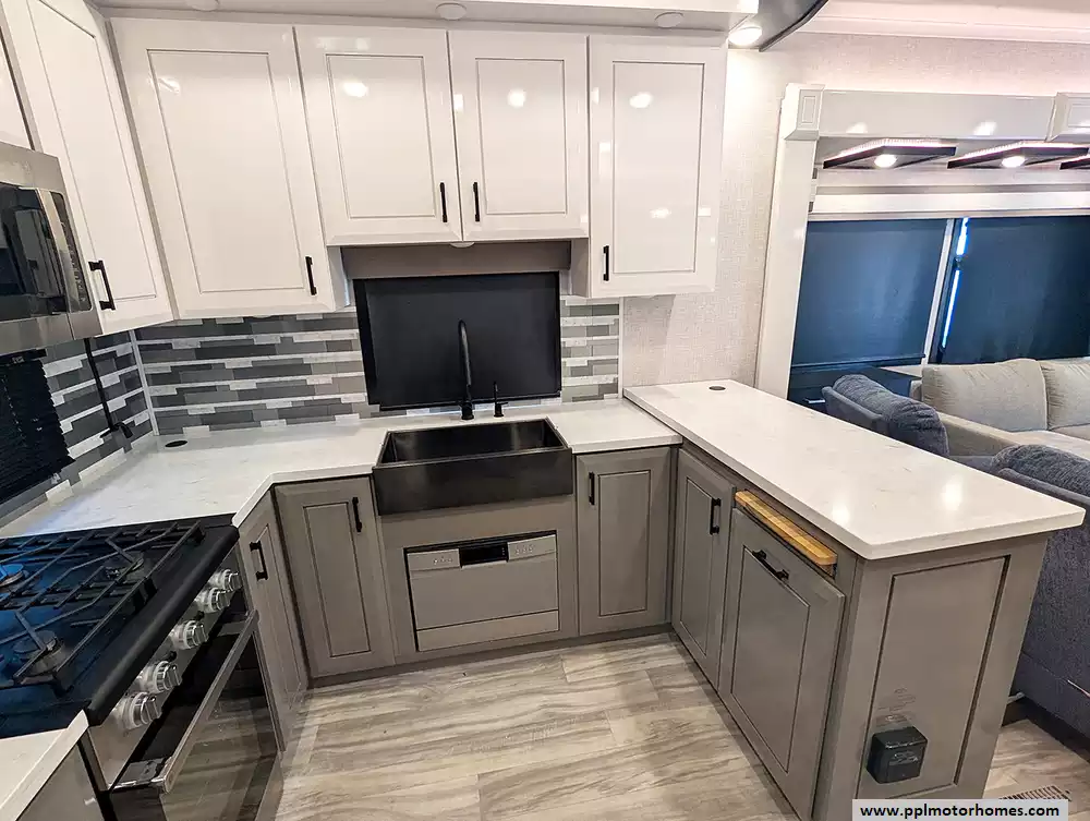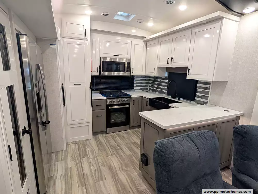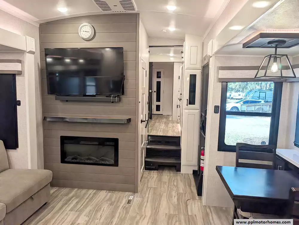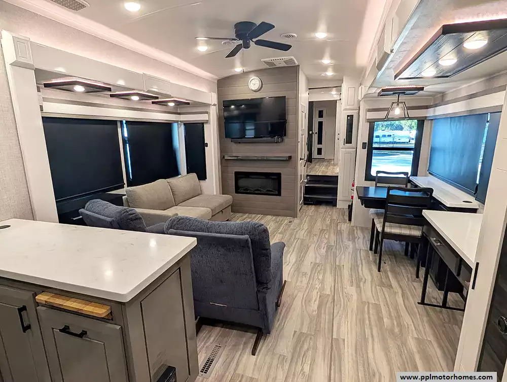 Experience the height of luxury and full-time livability with the 2024 Jayco Pinnacle 38FBRK. As Jayco's flagship fifth wheel, the Pinnacle is renowned for its 102-inch wide-body construction, featuring the robust Magnum Truss XL6 roof system and Climate Shield zero-degree tested weather protection for year-round comfort. This 43-foot masterpiece is designed with a fiberglass body and a rubber roof, offering a sophisticated rear-kitchen layout that has become an industry favorite. The interior is anchored by three spacious slide-outs and a premium GE residential appliance suite, including a double-door refrigerator with an in-fridge ice maker, a dishwasher, a convection microwave, and a four-burner range with an oven. Relax in the living area by the cozy fireplace or enjoy your favorite shows on one of the three TVs included throughout the coach.