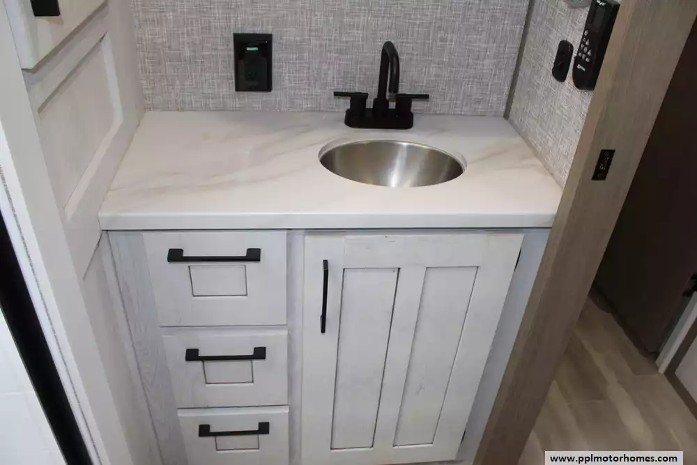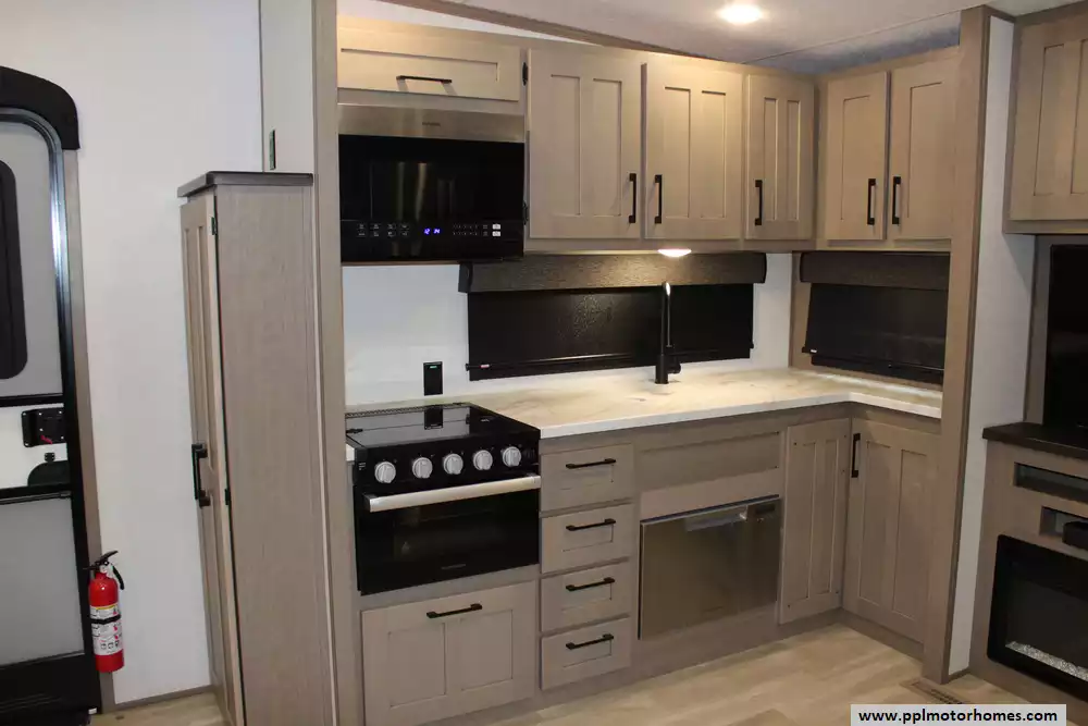 Specs: Length: 29.08 ft., Width: 8 ft., Height: 12.42 ft., Payload Capacity: 1,740 lbs., Total Fresh Water Tank Capacity: 55 gal., Total Gray Water Tank Capacity: 90 gal., Total Black Water Tank Capacity: 50 gal., Number of Propane Tanks: 2, Propane Tank Capacity: 60 lbs.