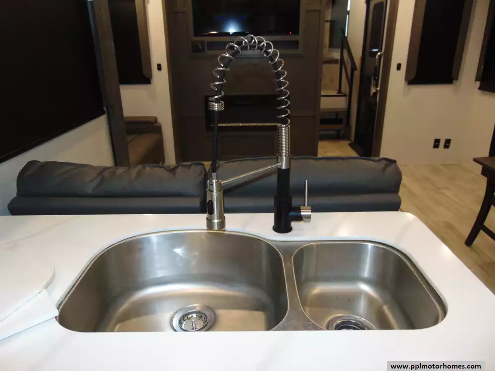 Specs: Length: 42.92 ft.,Width: 8.33 ft., Height: 13.33 ft.,Interior Height: 6.83 ft Payload Capacity: 2,624 lbs., Total Fresh Water Capacity: 54 gal.,Total Gray Water Capacity: 83 gal.,Total Black Water Tank Capacity: 83 gal.,Total Number of Propane Tanks: 2, Total Propane Tank Capacity: 60 lbs.