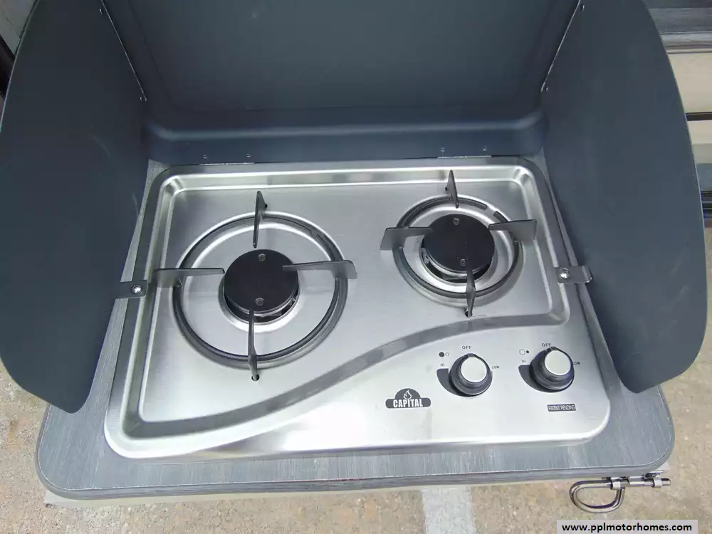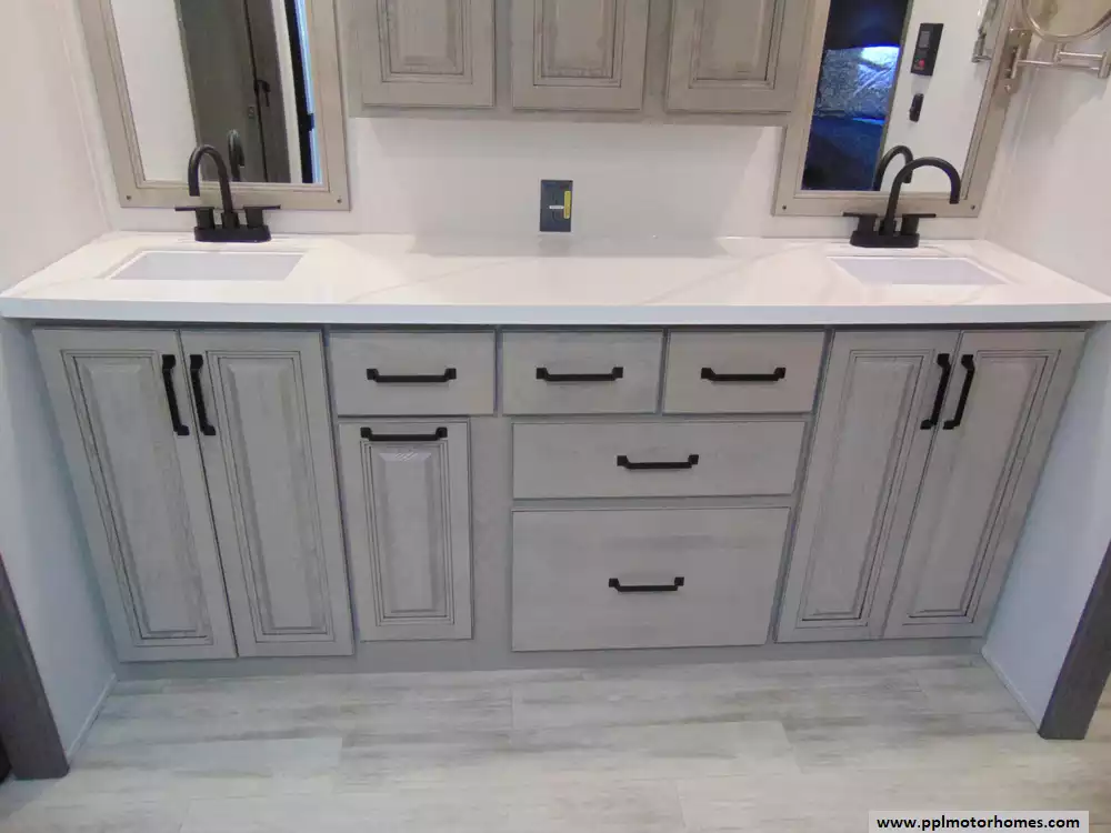 Specs: Length: 42.92 ft.,Width: 8.33 ft., Height: 13.33 ft.,Interior Height: 6.83 ft Payload Capacity: 2,624 lbs., Total Fresh Water Capacity: 54 gal.,Total Gray Water Capacity: 83 gal.,Total Black Water Tank Capacity: 83 gal.,Total Number of Propane Tanks: 2, Total Propane Tank Capacity: 60 lbs.
