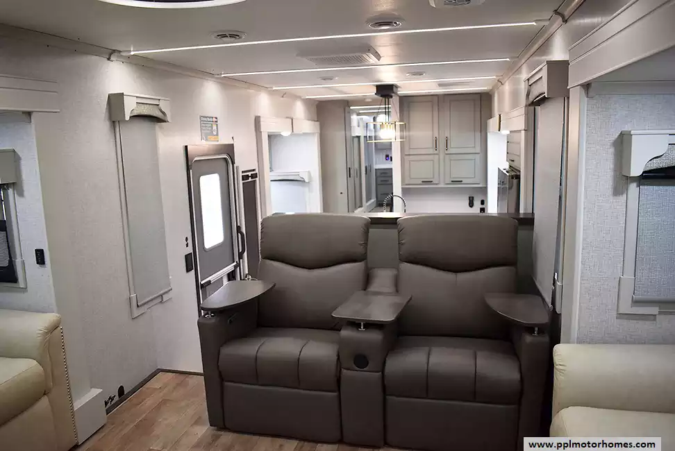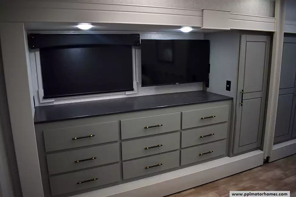 (Floor plan is NOT drawn to scale. Length of vehicle is approximate. Buyer is responsible for verifying actual length. PPL Motor Homes compiled this list of features, specifications, equipment and options as a guide. No representation or warranties, either express or implied, are made as to the accuracy of the information herein. Please verify for yourself all items listed before purchase.)