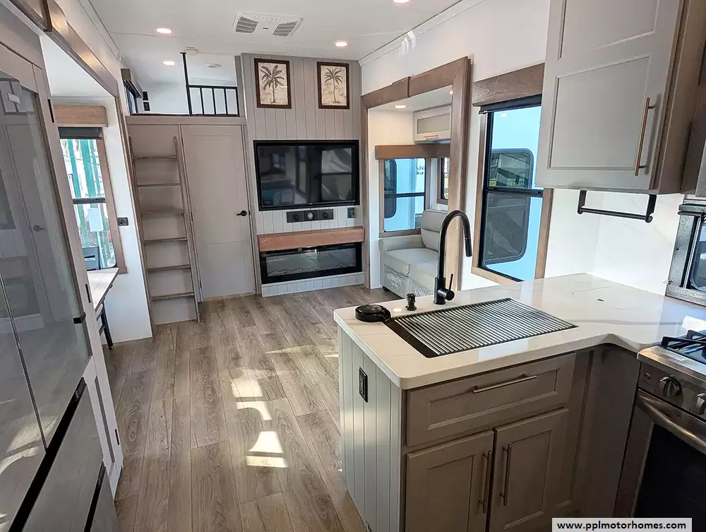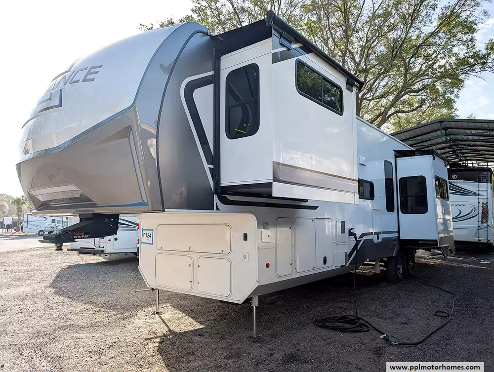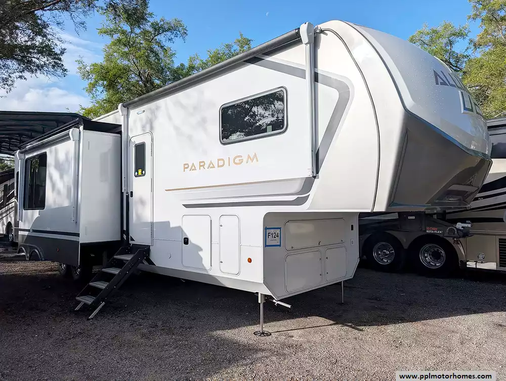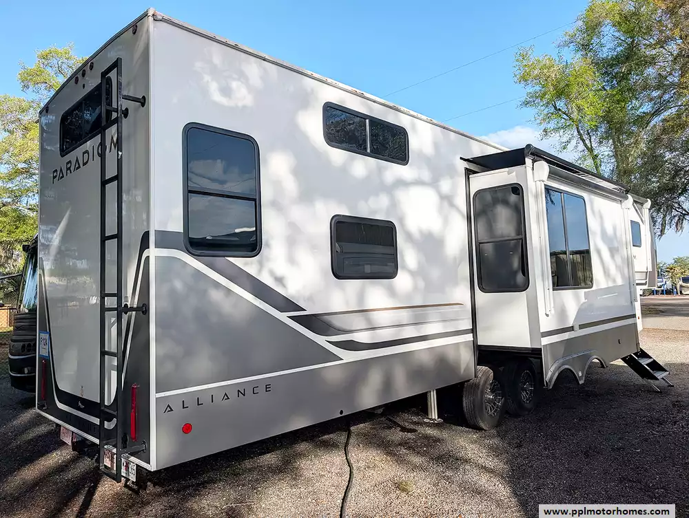 The 2025 Alliance Paradigm 395DS stands at the pinnacle of luxury fifth-wheel design, offering a sophisticated living experience built on a foundation of customer-driven innovation. Spanning 42 feet and constructed with a high-quality fiberglass body and a durable TPO roof, this model is celebrated for its spacious wide-body interior and exceptional towing performance. With four slide-outs that dramatically expand the living area, the Paradigm provides a true residential feel, making it an ideal choice for travelers who refuse to compromise on comfort, space, or build quality.