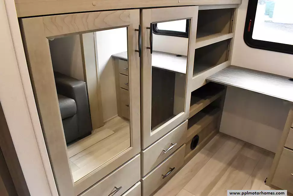 (Floor plan is NOT drawn to scale. Length of vehicle is approximate. Buyer is responsible for verifying actual length. PPL Motor Homes compiled this list of features, specifications, equipment and options as a guide. No representation or warranties, either express or implied, are made as to the accuracy of the information herein. Please verify for yourself all items listed before purchase.)