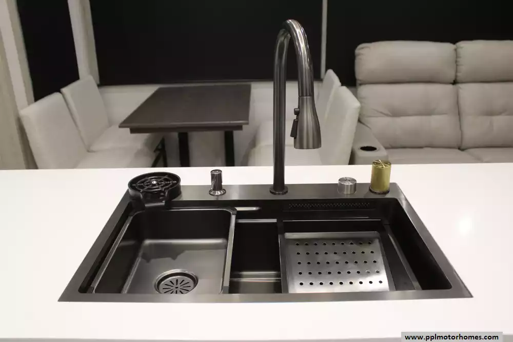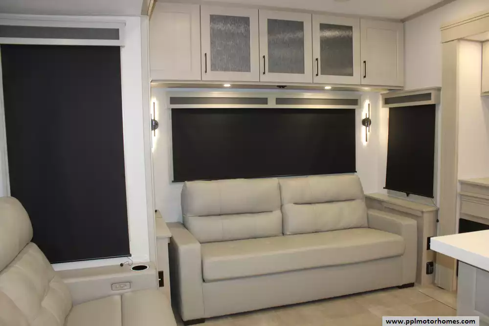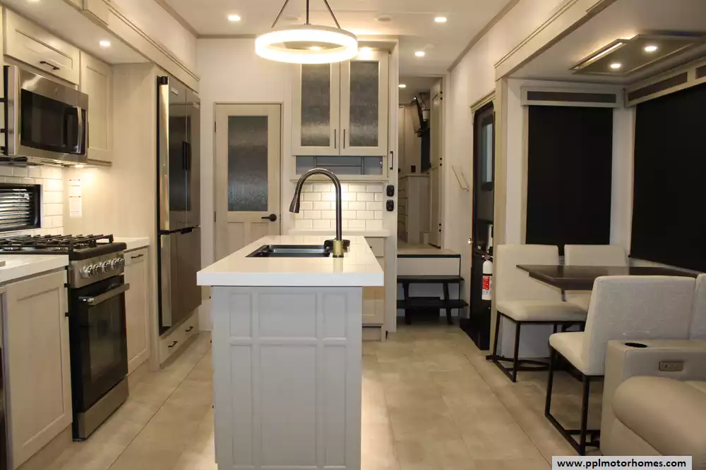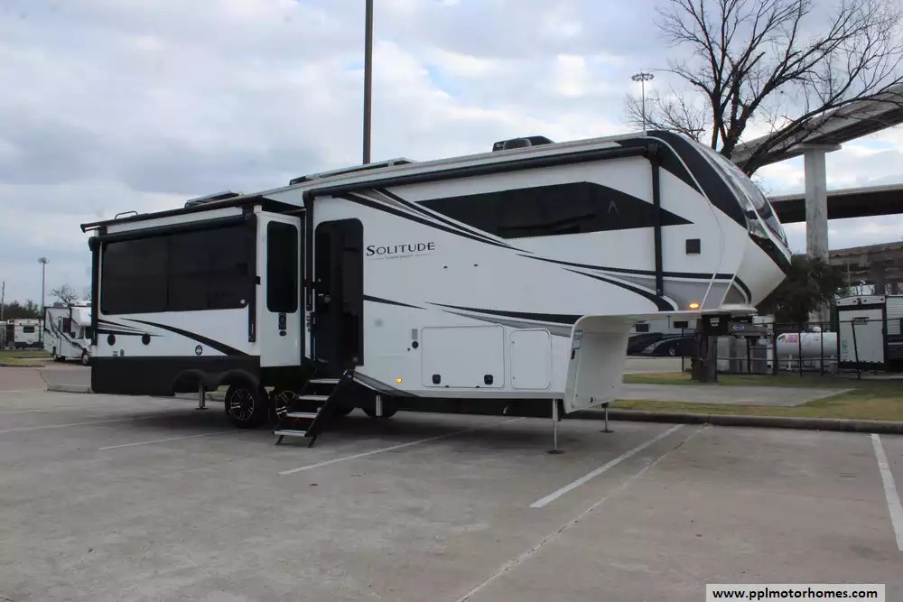 This 2025 Solitude 310GK is a luxury fifth-wheel RV designed for extended stays, all-season comfort, and residential-style living. Luxuries Include...Hydraulic Landing Gear, 3 Slide-outs, 3 Ducted Air Conditioners, 110v Residential Norcold Refrigerator, Automatic Main Awning And Slide Awning, Washer/Dryer, Solar Panel, Outside Speakers, 2 TVs, Outside Shower, 4 Burner Range, and Oven.