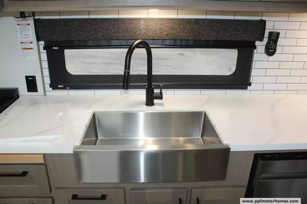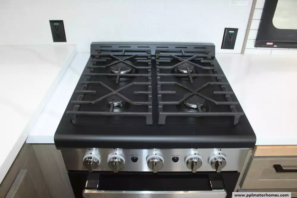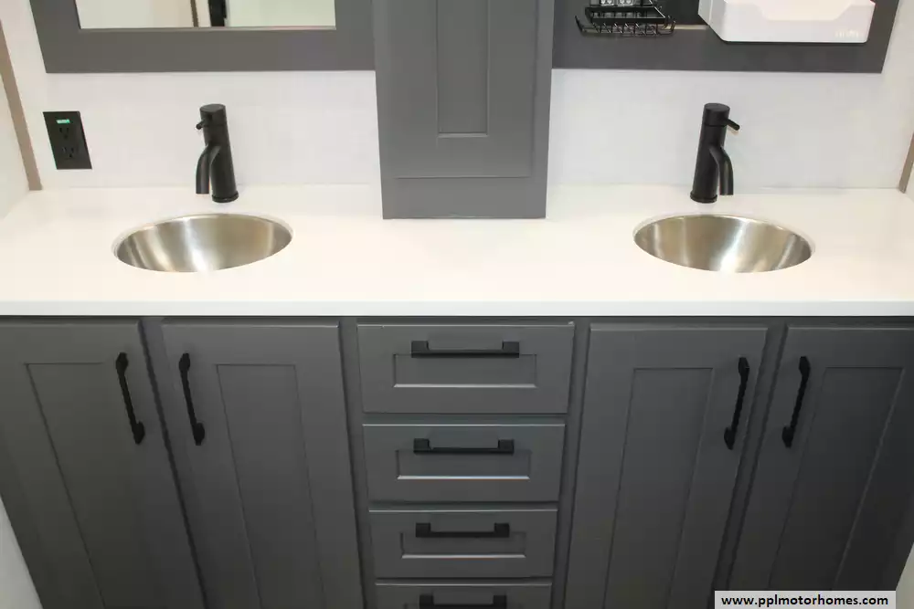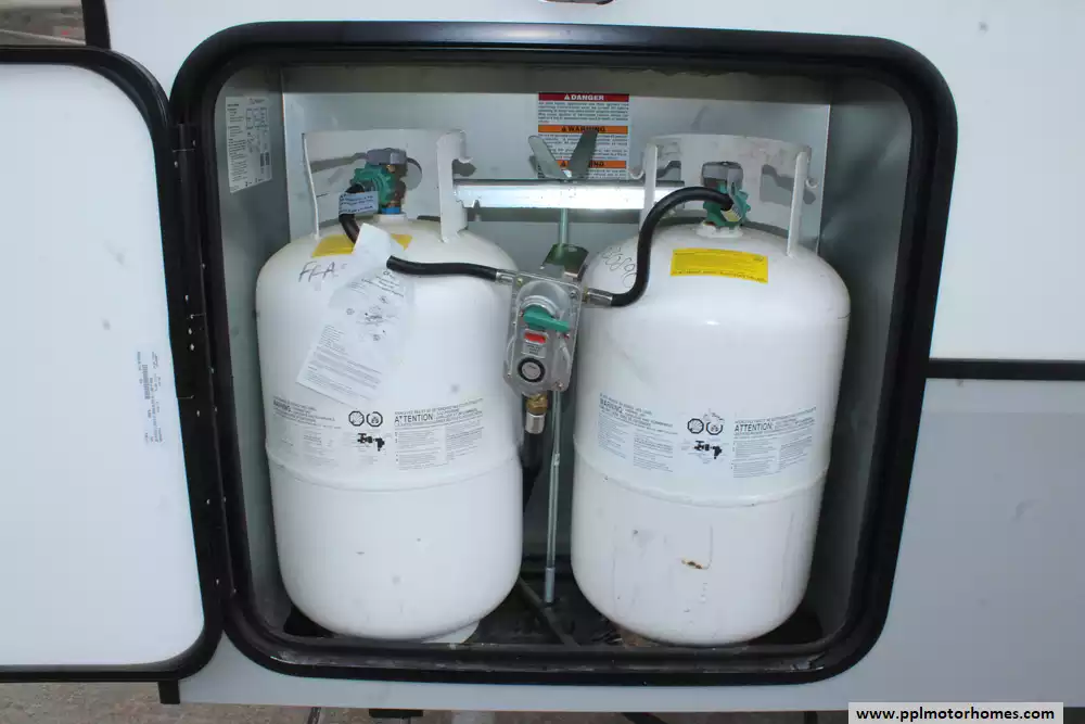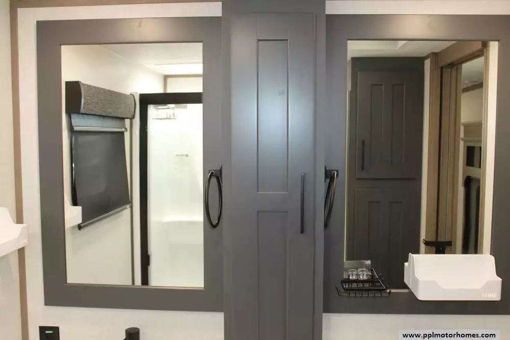 Specs: Length: 42.11 ft., Width: 8.42 ft., Height: 13.6 ft., Payload Capacity: 2,210 lbs., Total Fresh Water Tank Capacity: 76 gal., Total Grey Tank Capacity: 90 gal., Total Black Water Tank Capacity: 50 gal., Propane Tank Capacity: 60 lbs.