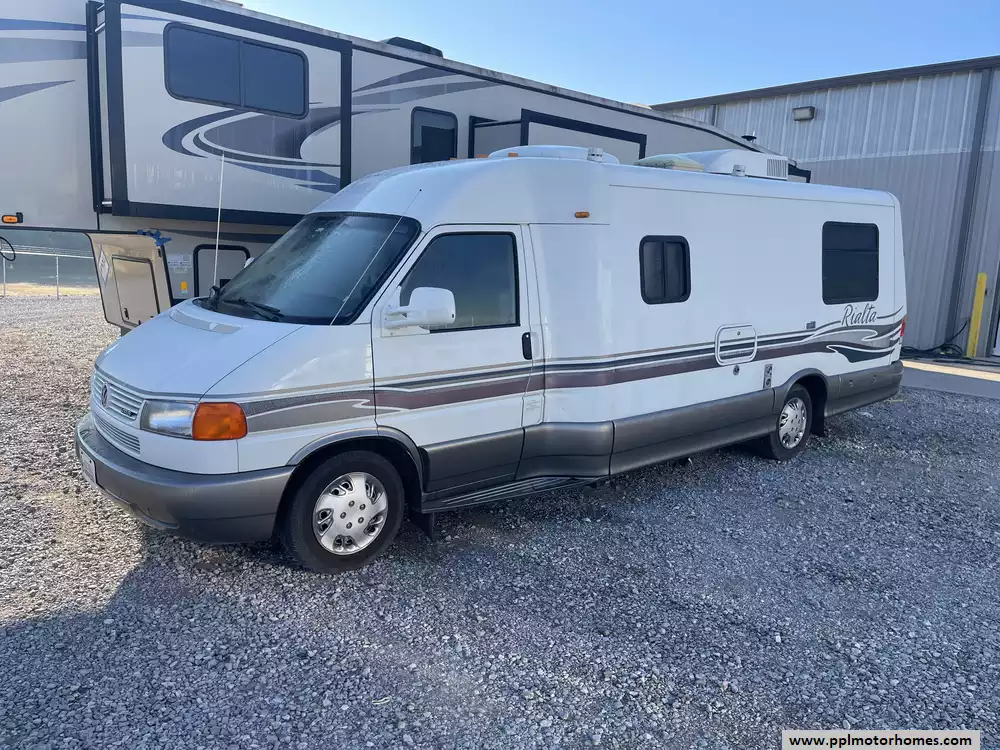 This 1999 Winnebago Rialta 22HD has a 2.8l V6 Volkswagen Engine On a Volkswagon Chassis, Gas Generator, 1 Non-Ducted Air Conditioner, Single Door Gas/110v/12v Norcold Refrigerator, Microwave, 3 Burner Range, Oven
