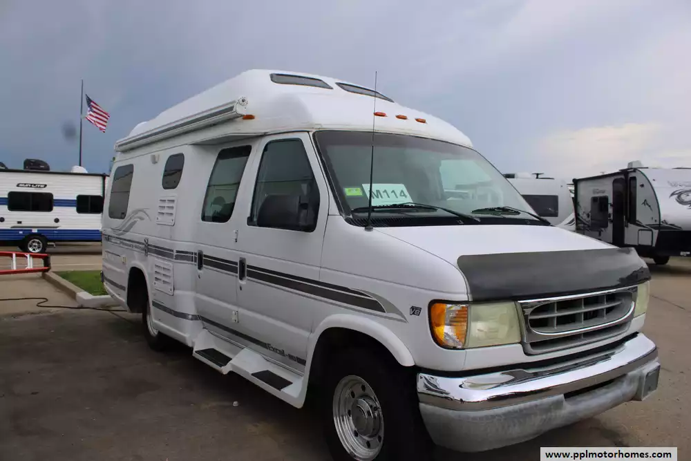 The 2002 Pleasure-Way Excel-RD is a Class B motorhome built on a Ford E-350 chassis, offering a compact yet comfortable travel experience. Powered by a 5.4L V8 engine, it delivers strong performance for highway cruising and long-distance trips. The Excel-RD features a rear dinette that easily converts into a spacious bed, a fully equipped kitchenette with a two-burner stove, microwave, sink, and refrigerator, and a wet bath with a toilet and shower. With high-quality craftsmanship, solid maple cabinetry, and thoughtful use of space, this camper van is ideal for couples or solo travelers seeking the convenience of a fully self-contained RV in a maneuverable, easy-to-drive package.