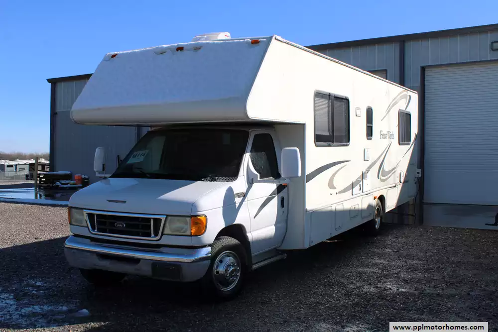 This 2004 Four Winds 31N has a V10 6.8l Ford Engine On a Ford 450 Chassis, Onan Gas Generator, 1 Ducted Air Conditioner, Double Door Gas/110v Norcold Refrigerator, TV, Microwave, 3 Burner Range, Oven