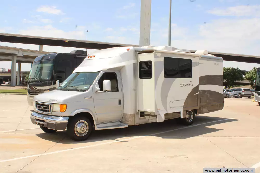 This 2006 Itasca Cambria 26A combines compact size with versatile features,making it an excellent choice for couples or small families looking for a comfortable and maneuverable RV.Comforts Include...V10 6.8 Ford Engine On a Ford 450 Chassis, 1 Slide-out, Onan Gas Generator, 1 Ducted Air Conditioner, Levelers, Double Door Gas/110v Norcold Refrigerator, Automatic Main Awning And Slide Awning, Backup Camera, TV, DVD Player, Outside Shower, Convection Microwave,and 3 Burner Range.It's a popular choice for travelers seeking freedom and flexibility on their RV adventures.