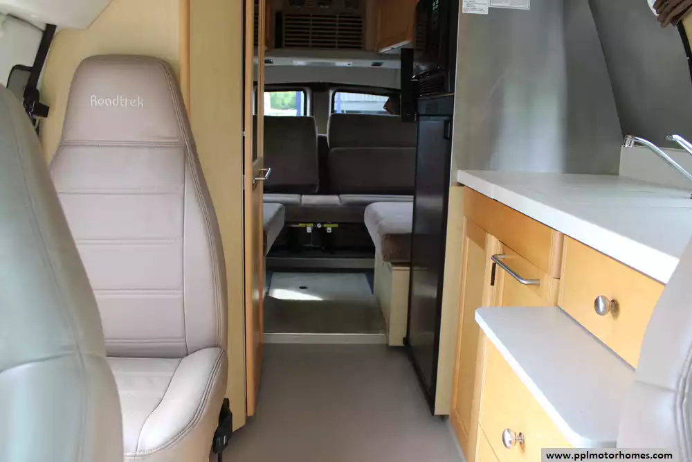 This Roadtrek is fully self-contained and ready for adventure, equipped with a functional kitchen including a 3-way refrigerator, cooktop, microwave, and sink, along with a convenient wet bath with shower and toilet. The 6-gallon propane water heater, onboard fresh and waste tanks, and generator capability make it ideal for both campground stays and off-grid camping. Comfortable seating, overhead storage, and clever design throughout maximize every inch of space, making it feel far larger than its footprint suggests.