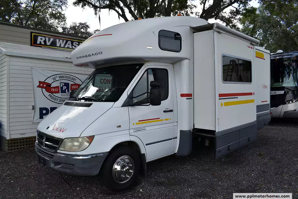 This 2006 View 23J has a 5 Cyl Turbo Mercedes Benz Engine On a Sprinter Chassis, 1 Slide-out, Onan Propane Generator, 1 Ducted Air Conditioner, Double Door Gas/12v Norcold Refrigerator, Main Awning, Convection Microwave, 3 Burner Range