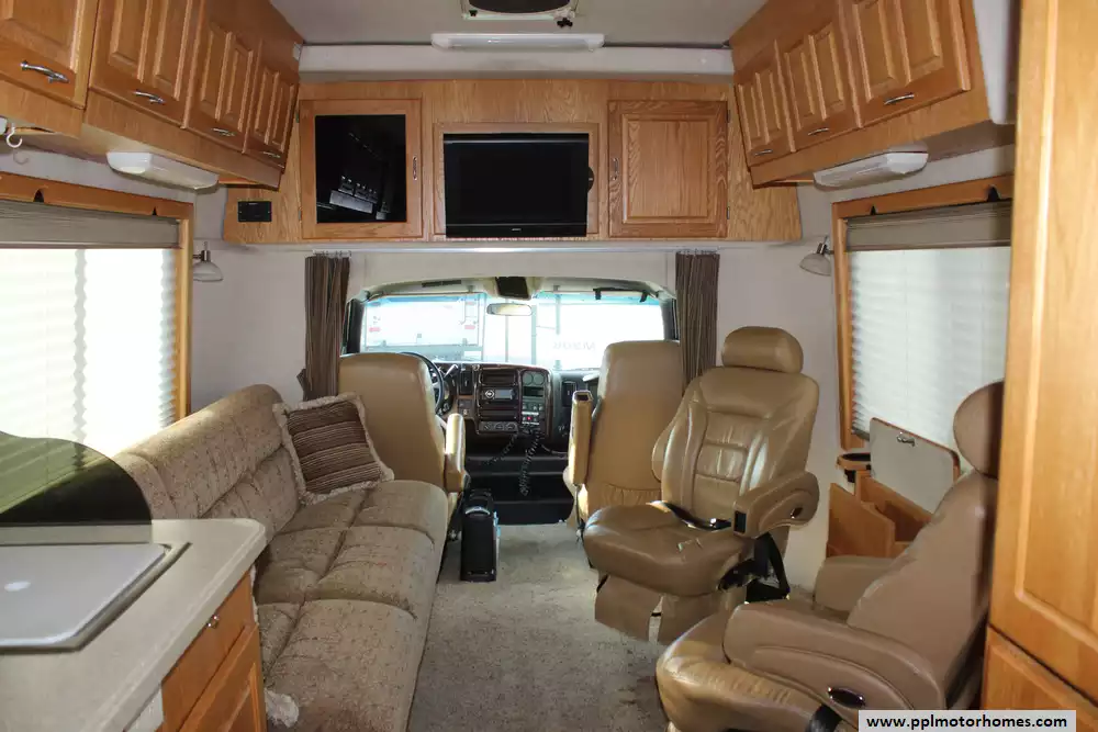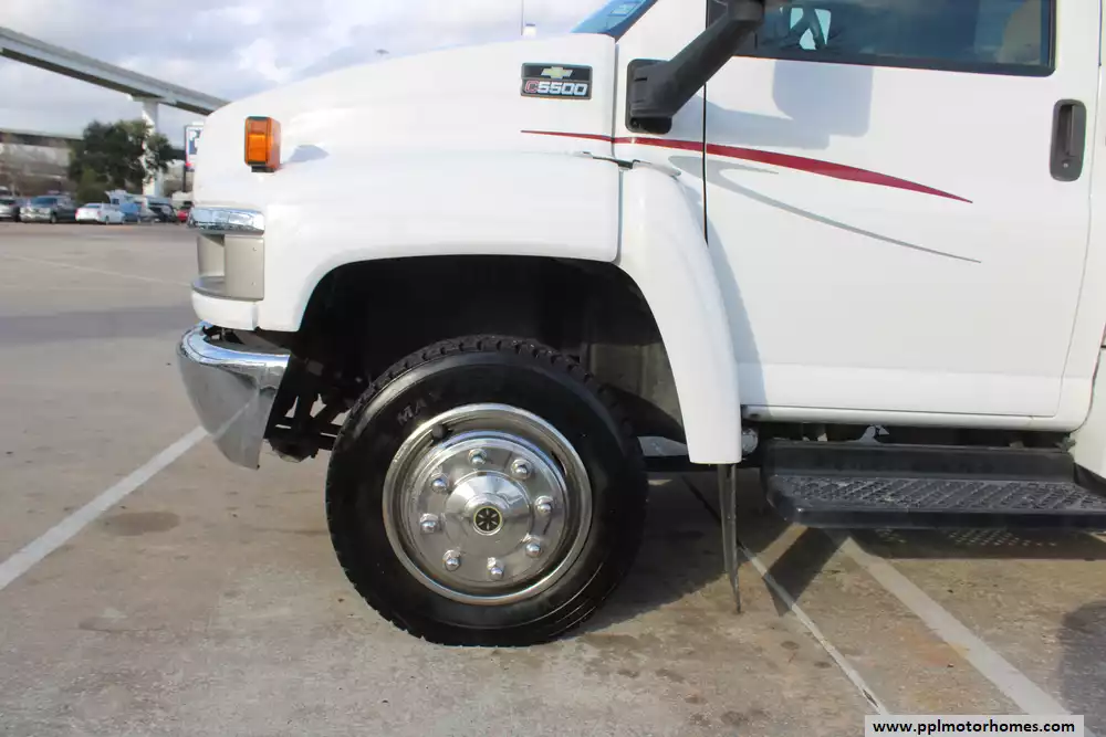 This 2008 President blends residential comfort, solid construction, and good road manners for long-distance travel. Features Include...8.1l V8 Chevy Engine On a Chevy 5500 Chassis, Onan Gas Generator, 2 Non-Ducted Air Conditioners, Levelers, Double Door Gas/110v Dometic Refrigerator, Backup Camera, Heated Tanks, TV, Microwave, and 3 Burner Range.