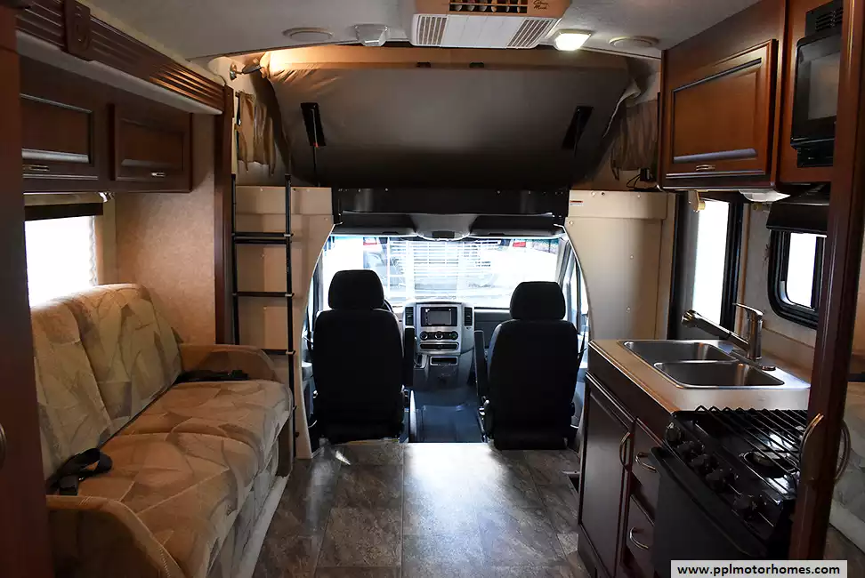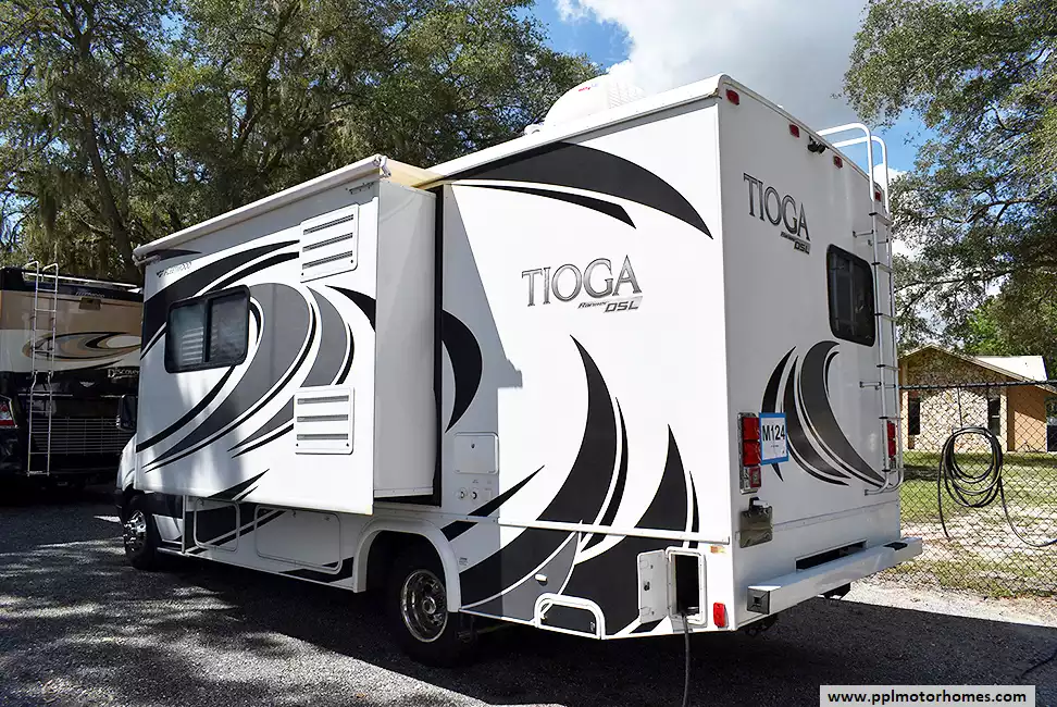 This 2011 Tioga by Fleetwood 24L has a V6 Mercedes Benz Engine On a Sprinter Chassis, 1 Slide-out, Onan Diesel Generator, 1 Non-Ducted Air Conditioner, Double Door Gas/110v Dometic Refrigerator, Automatic Main Awning And Slide Awning, Backup Camera, 2 TVs, DVD Player, Outside Shower, Microwave, 3 Burner Range, Oven