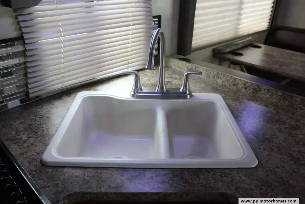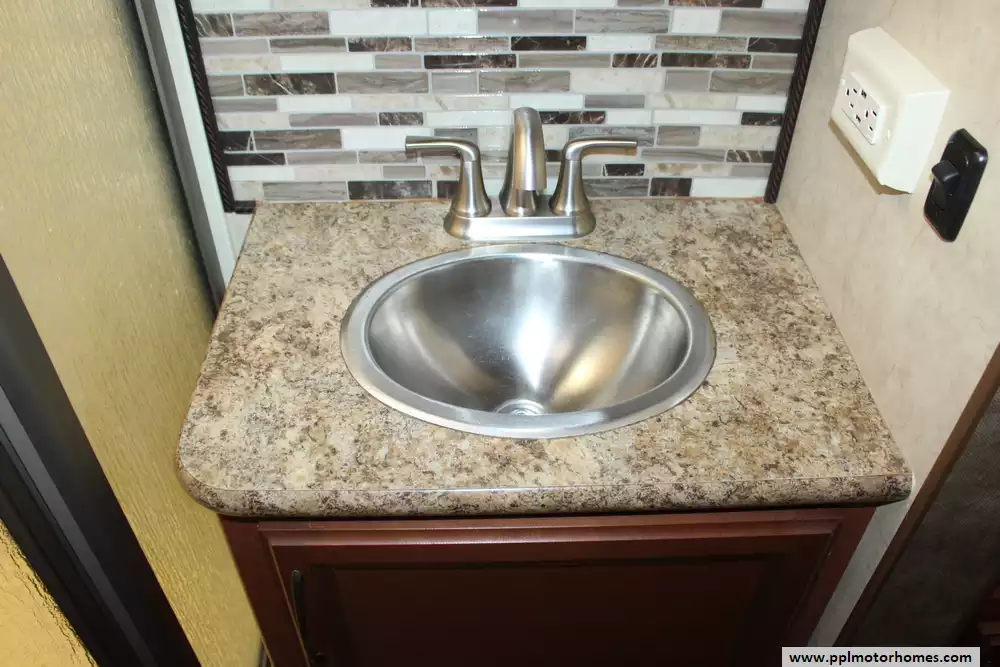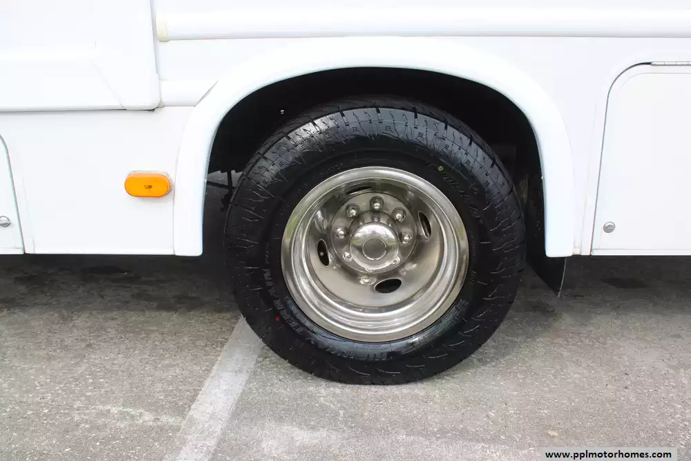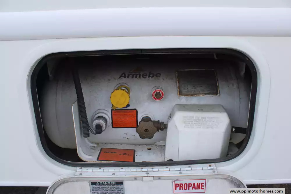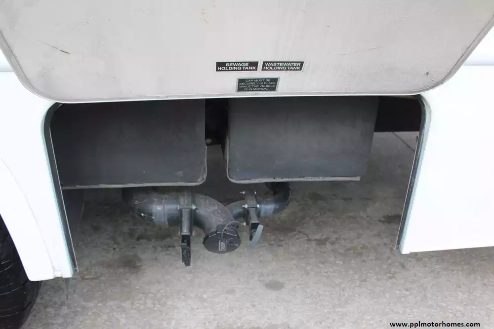 Specs: Length: 32.2 ft., Height: 10.10 ft., Width: 8.25 ft., Interior Height: 6.83 ft., Fuel Capacity: 55 gal., Total Fresh Water Tank Capacity: 40 gal., Total Gray Water Tank Capacity: 28 gal., Total Black Water Tank Capacity: 28 gal., Total Propane Tank Capacity: 40.9 lbs.